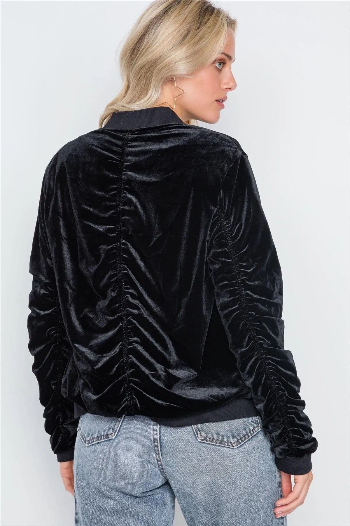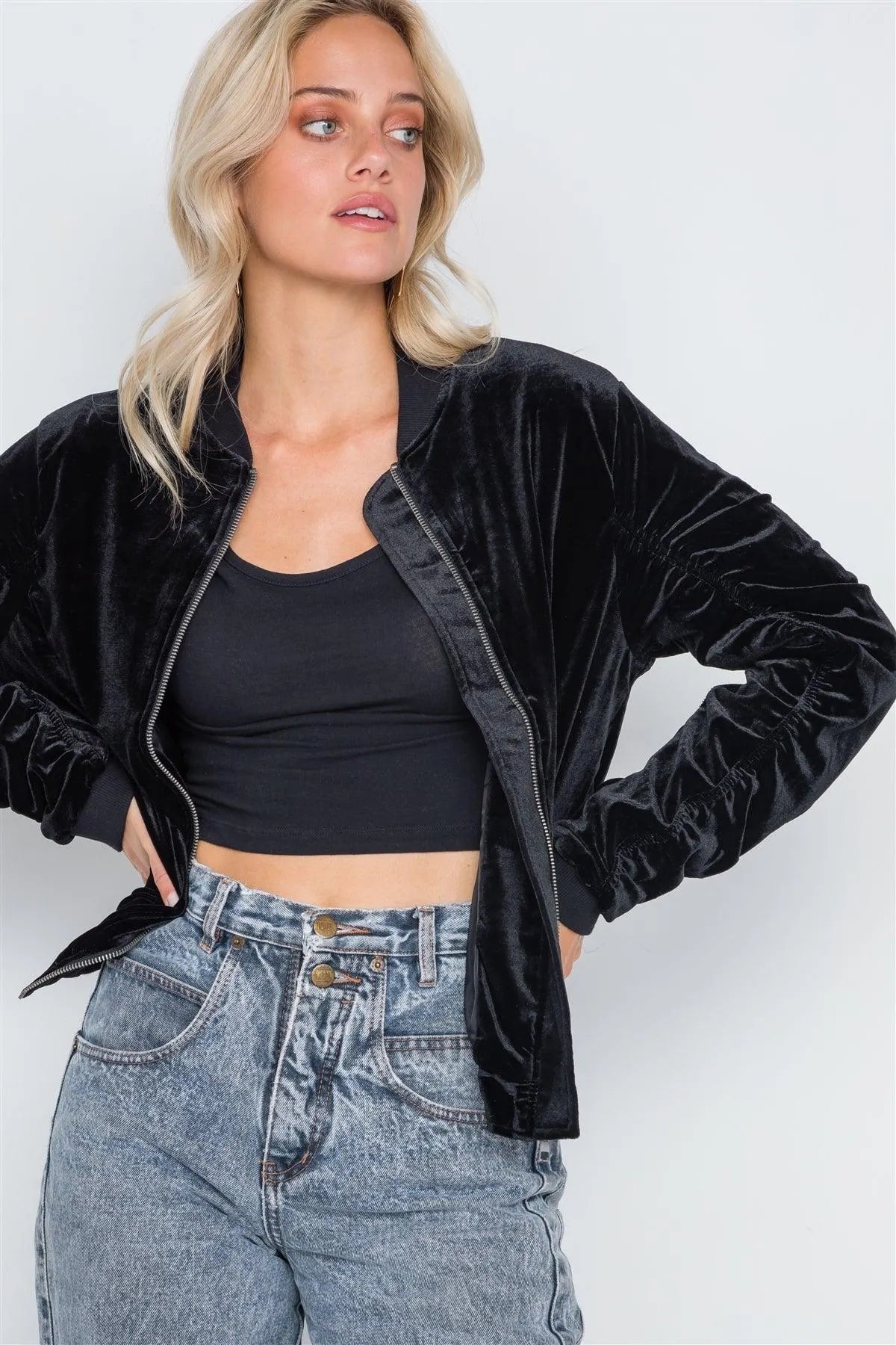 Puff Ruched Sleeve Lightweight Zip Up Outerwear Boutique Women JacketVendor:White Birch