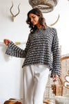 🖤 Item features: Black & white, striped, knit material, cotton & angora blend, straight neckline, long kimono sleeves, dropped shoulders, oversized fit, unlined, semi-stretchy, soft to touch, warm, cozy, organic, cozy, trendy, casual, street style