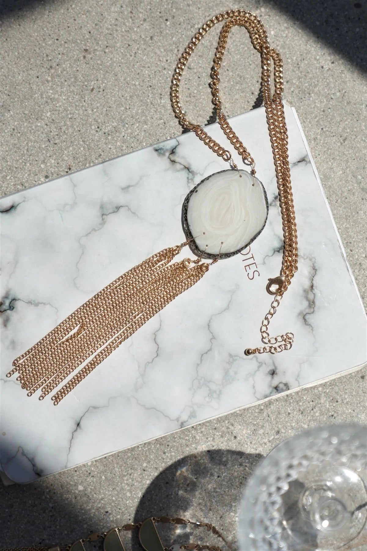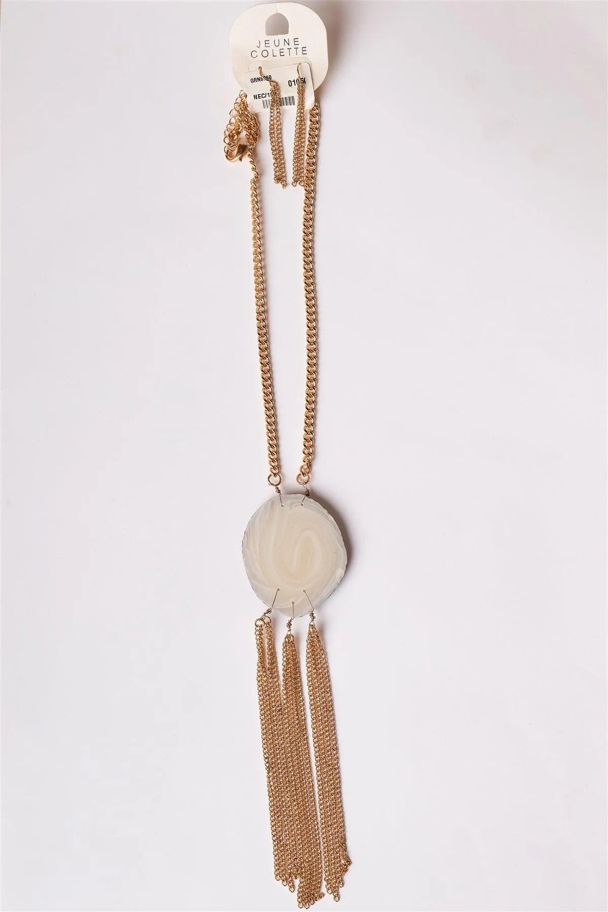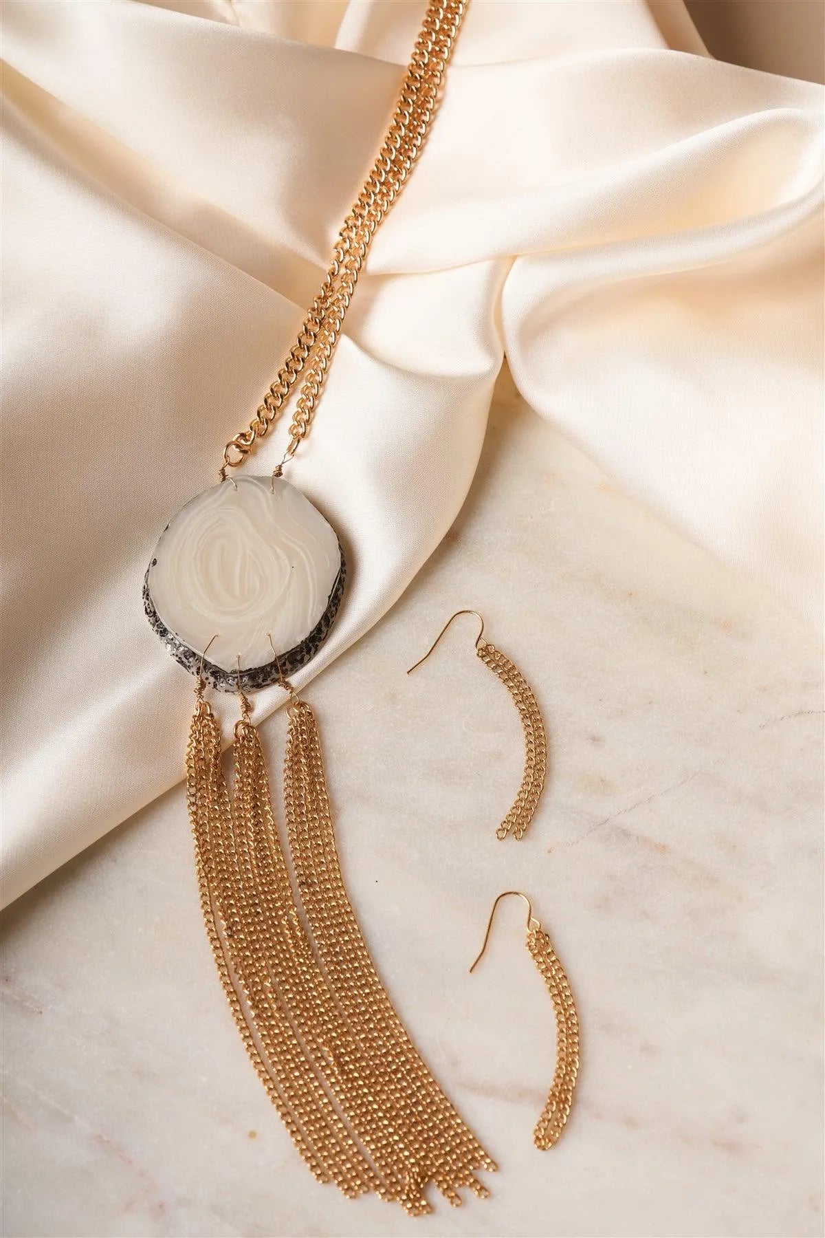 Opulent Stone Tassel Necklace Earrings Set /6 Sets