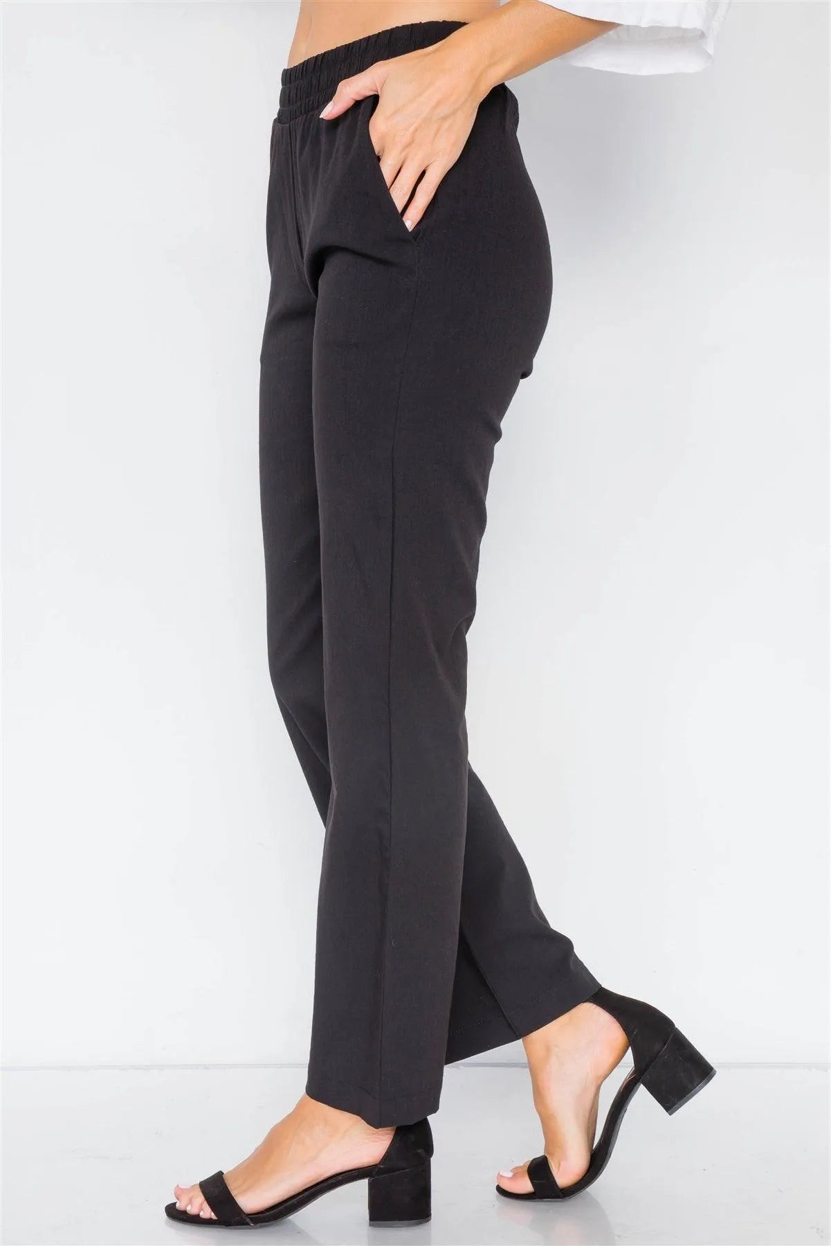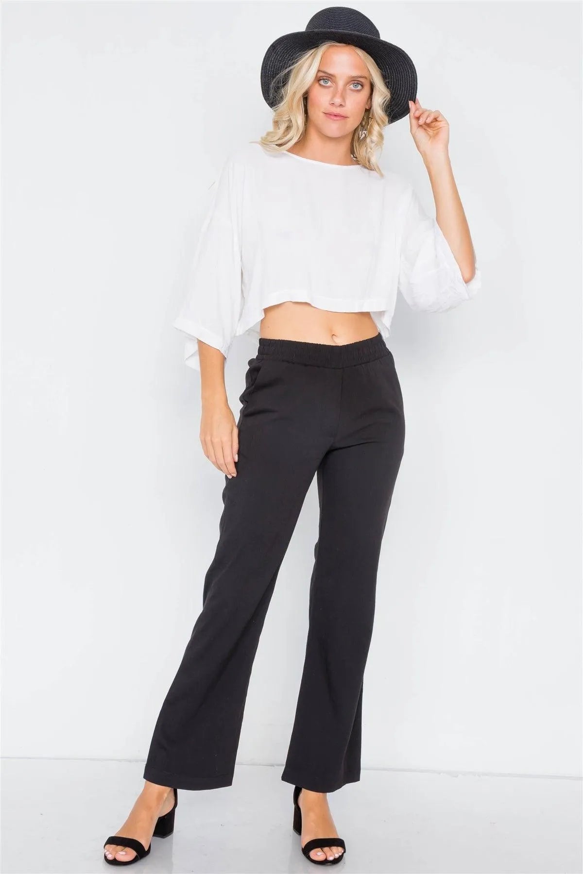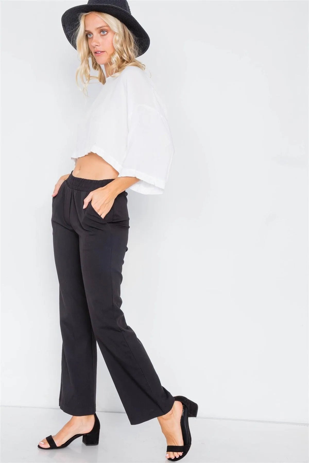 Black Wide Leg Ankle Mid Rise Pant /2-2-1