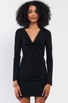Black Wrap Twist Detail Bust Cut Out Detail Long Sleeve Fitted Mini Dress /1-1-2