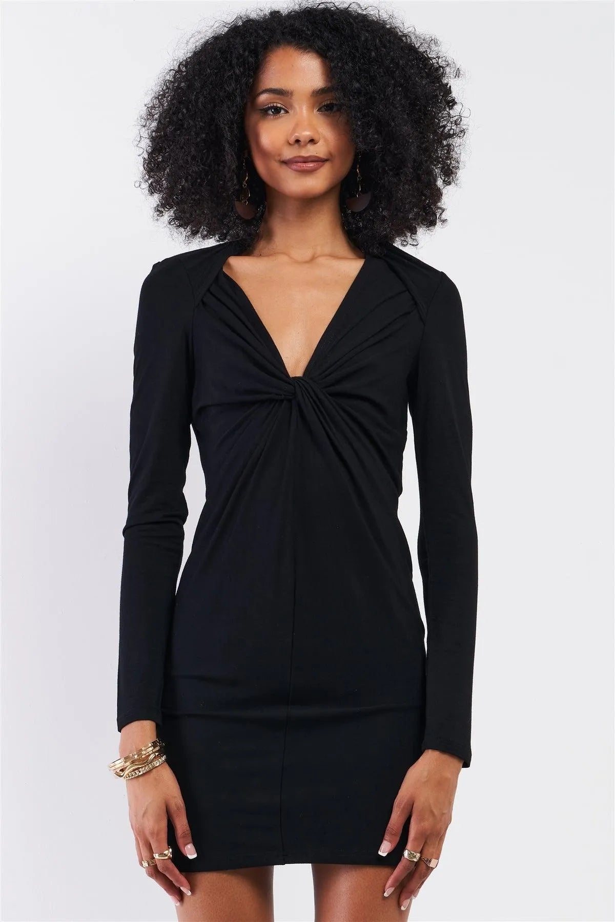 🖤 Item features: Solid black, front wrap twist detail, long sleeve, bust cut out detail, tight fitting, very stretchy, unlined, non-sheer, mini length, sexy, party wear, cocktail dress, night club, night out look, fall/winter collection