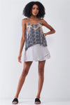 Blue Cream Paisley Pattern Print Sleeveless Lace Cut-Ins Racer Back Detail Relaxed Babydoll Top /1-1-2