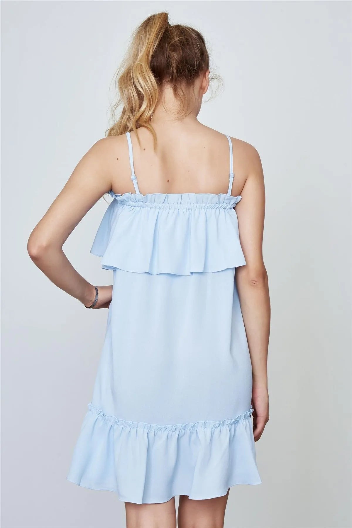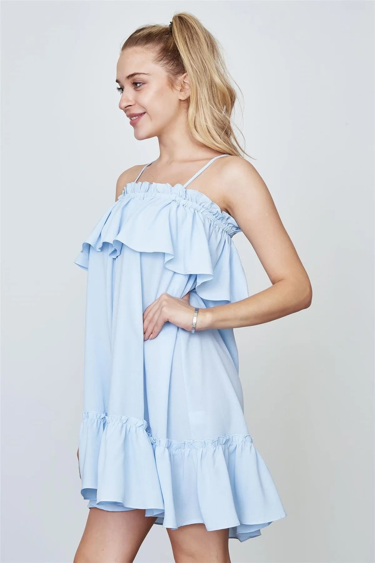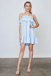 Blue Frill Off The Shoulder Neckline And Hem Mini Dress /2-2-2