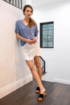 🖤 Item Features: Blue, knit semi-sheer material, contrast button up front, twisted front detail, v-neckline, short cuffed sleeves, relaxed fit, unlined, stretchy, casual, girlish, chic, breathable, lightweight