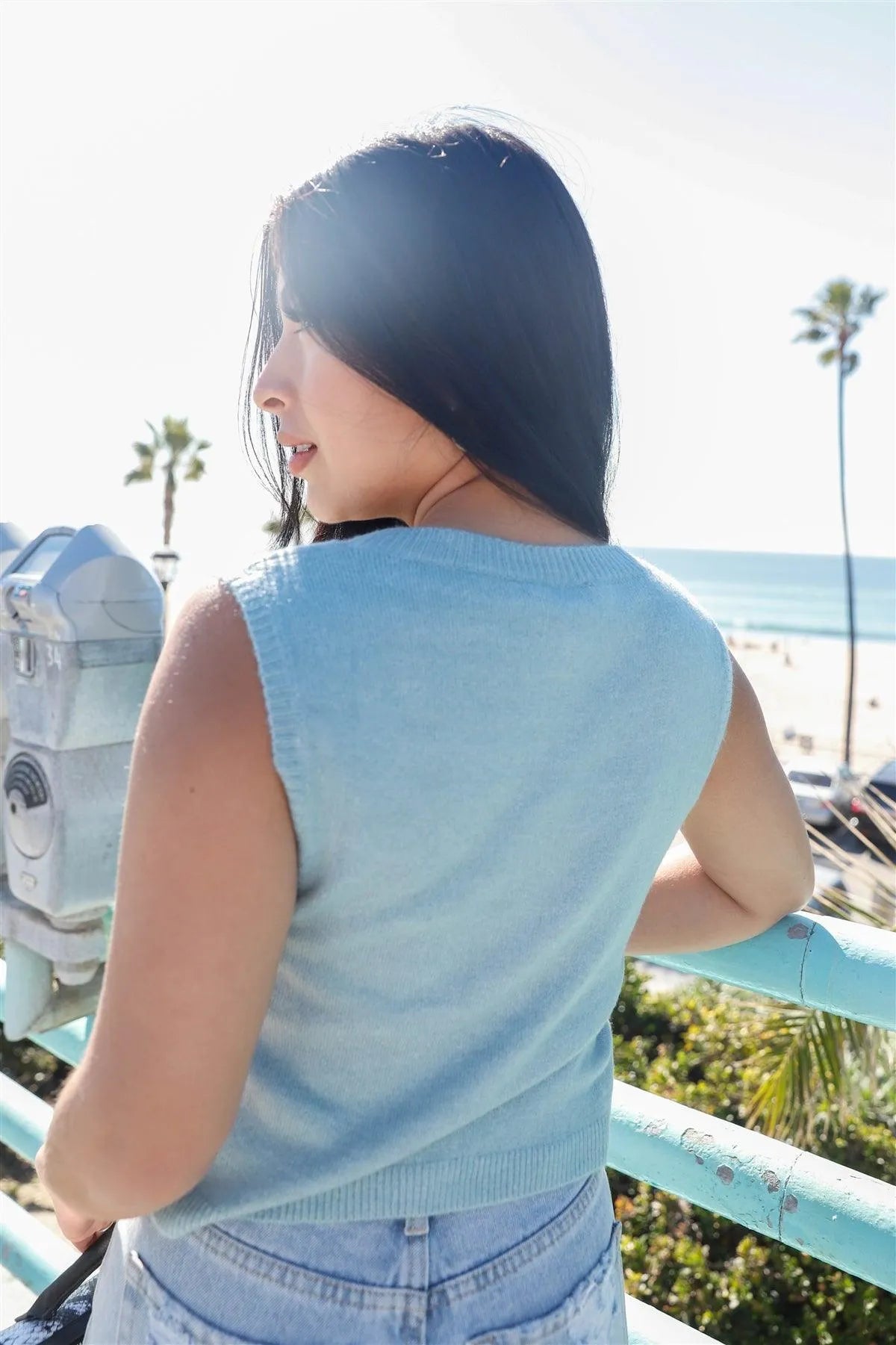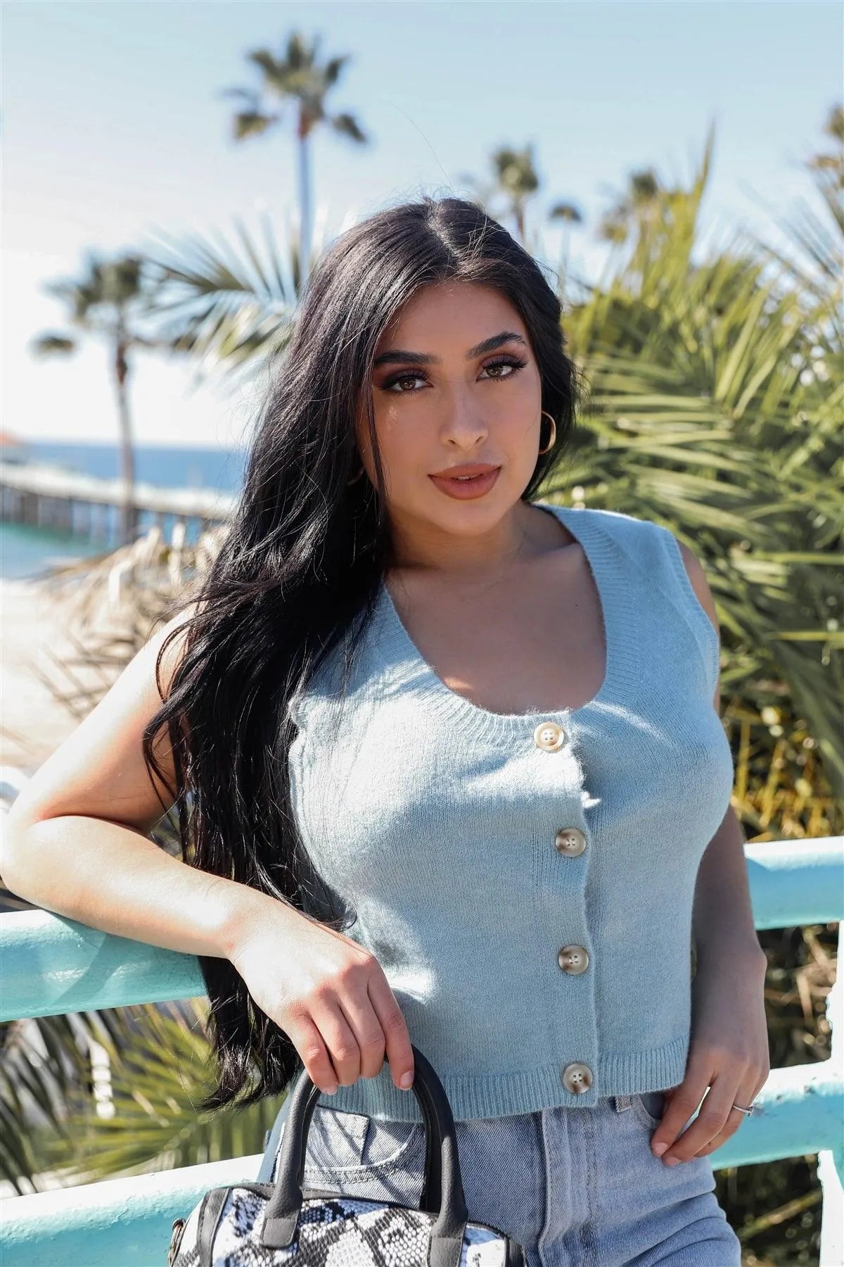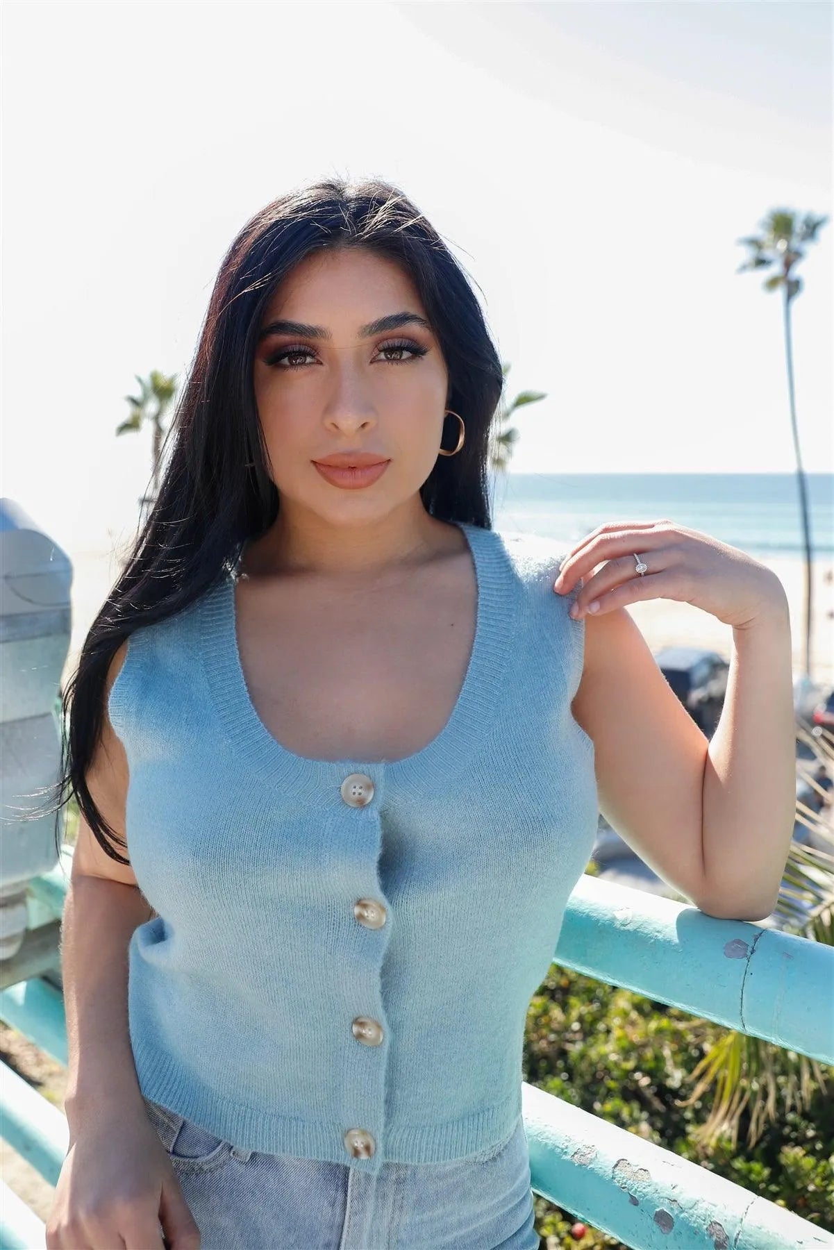 Blue Knit Button Up Sleeveless Top /3-2-1