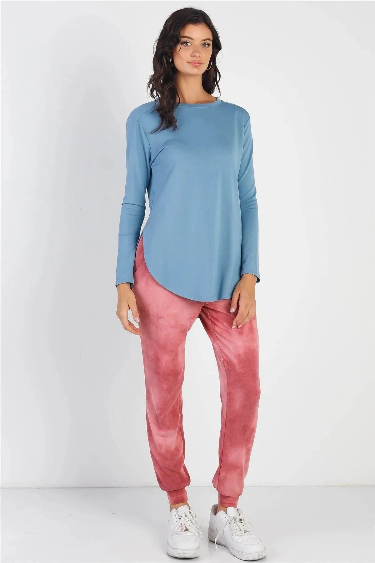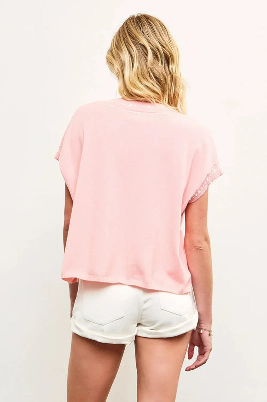 Marsala Pink White Crochet Lace Trim Boho Relaxed Fit Long Sleeve Pullover TopVendor:White Birch