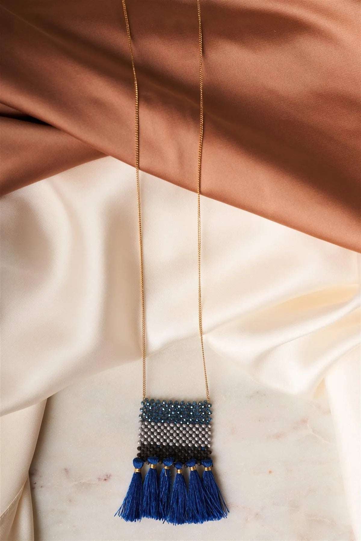 Blue Multi Tassels & Beads Necklace /1 Pair