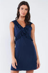 Blue Navy V-Neck Sleeveless Criss Cross Frill Hem Mini Dress