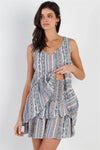 🖤 Item features: Blue pink, paisley print, flare hem, v-neckline, sleeveless, relaxed fit, smocked waistline, super high waist, ruffled, mini length skirt, non-sheer, unlined, non-stretchy, casual, cute, girlish, trendy, stylish, spring/summer collection