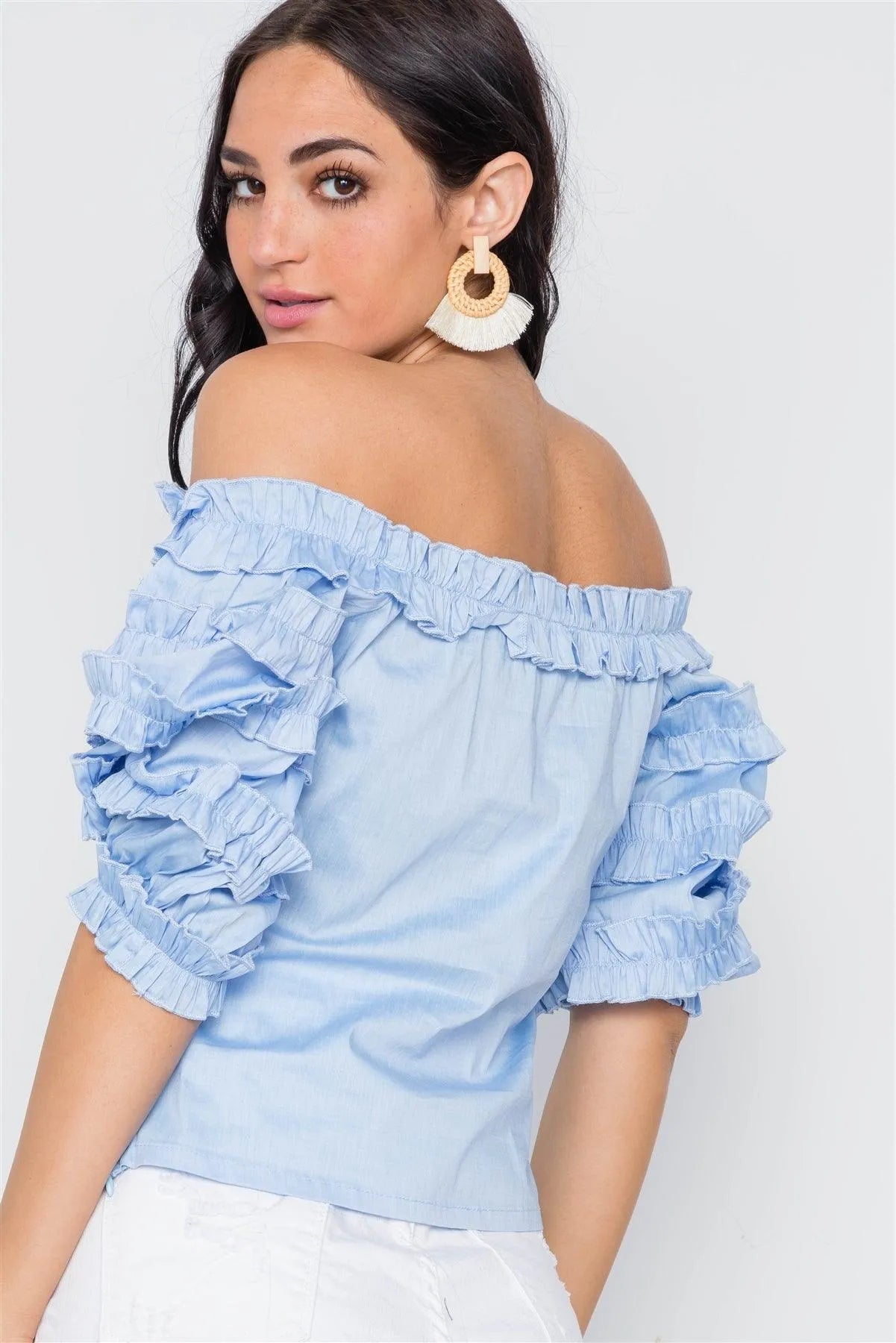 Blue Puff Sleeve Off-The-Shoulder Top /2-2-2