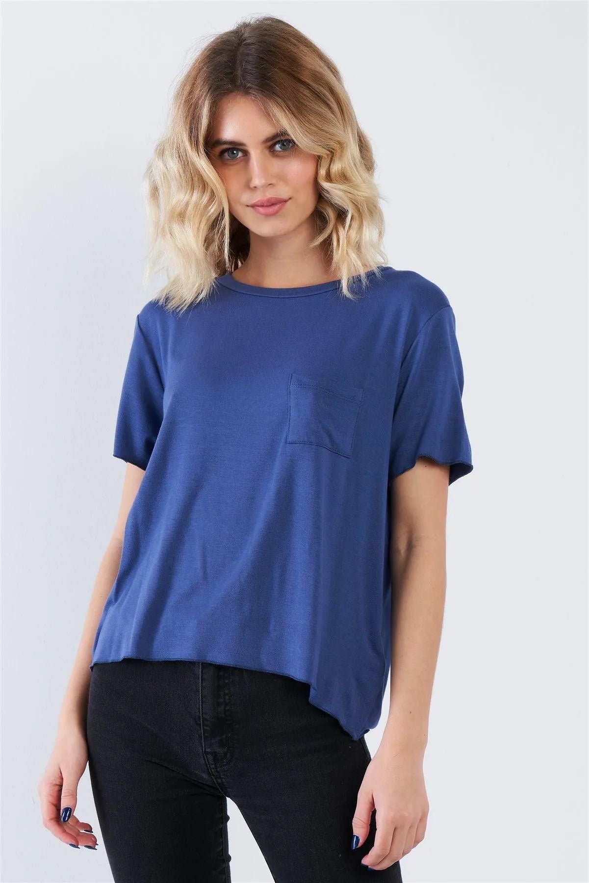 Top Features: side bust pocket, short sleeve, drop shoulder, lightweight, basic, solid, casual, unlined, super stretchy.Model is 5'9 wearing a size Small ( Waist: 26", Bust: 34B, Hips: 36")Item measurements: Length: 21.5'', Bust: 37", Sleeve: 7"True to size