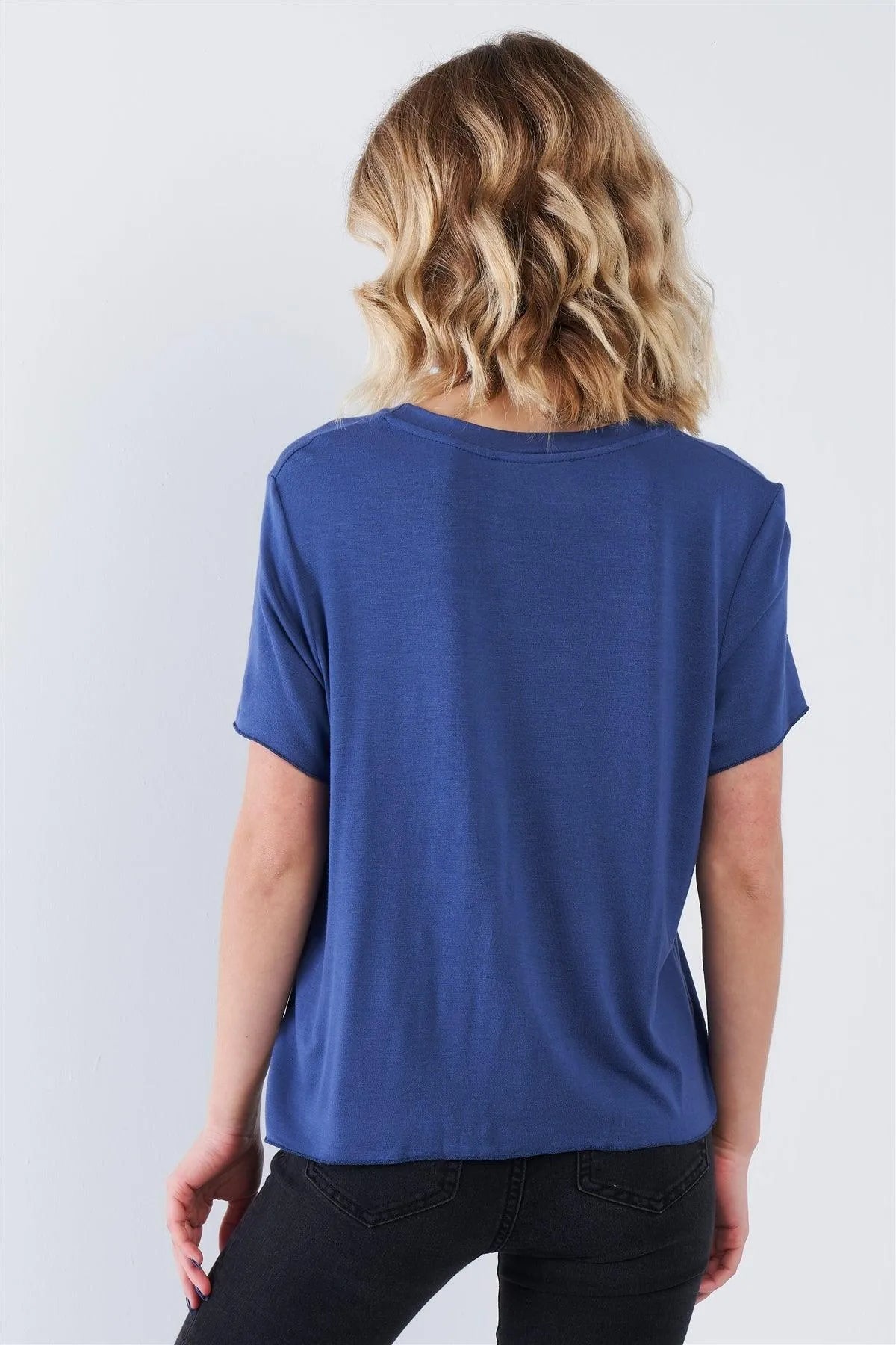 Blue Round Neck Short Sleeve Basic Tee /3-2-1