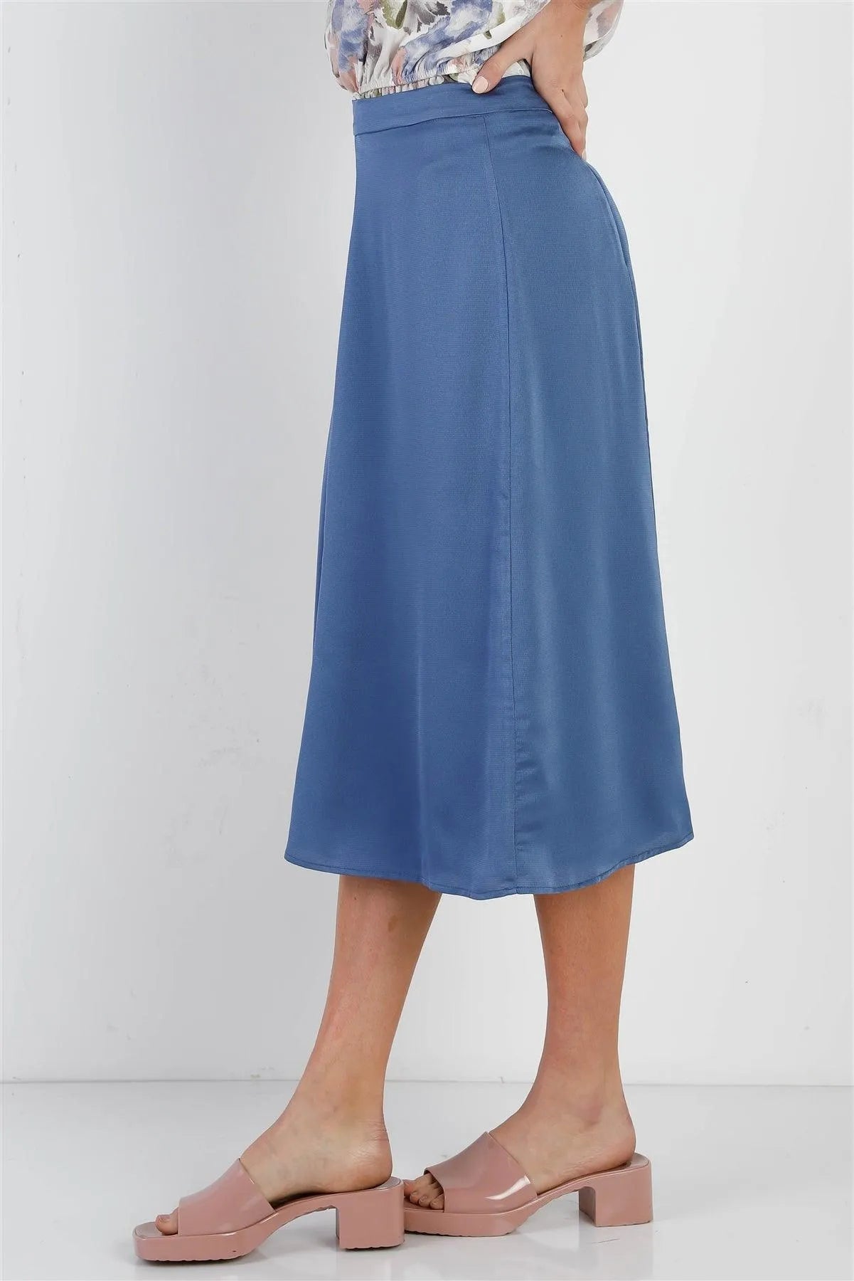 🖤 Item features: solid, blue, satin effect material, slip type, hidden side zipper with hook & eye closure, lined, non-stretchy, relaxed fit, midi length, stylish, chic, trendy, casual, floral style, spring/summer look, eye catching, must have