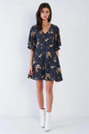 Blue Side Cut Out Multi Floral Print Kimono Sleeve Mini Dress /3-2-1