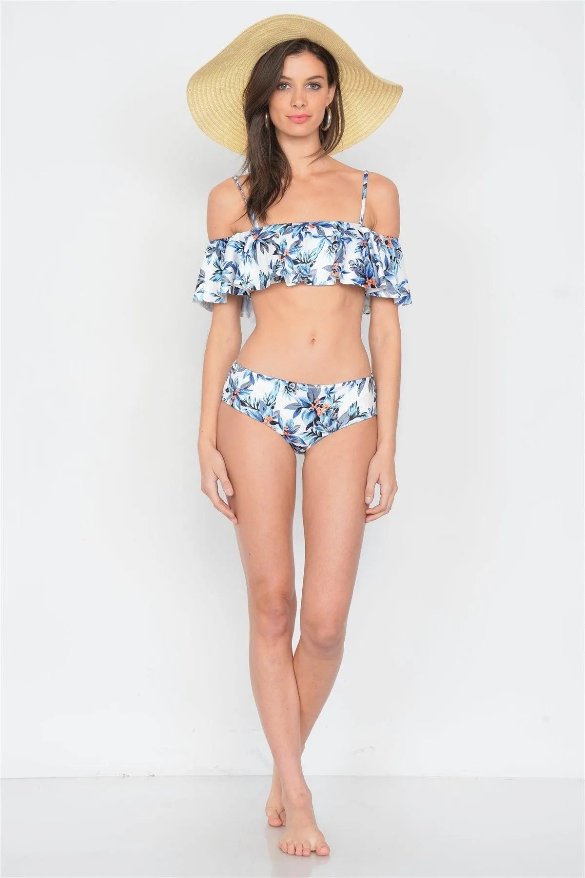 Blue Tropical Frill Cami & Mid-Rise Bikini Set /2-2-1