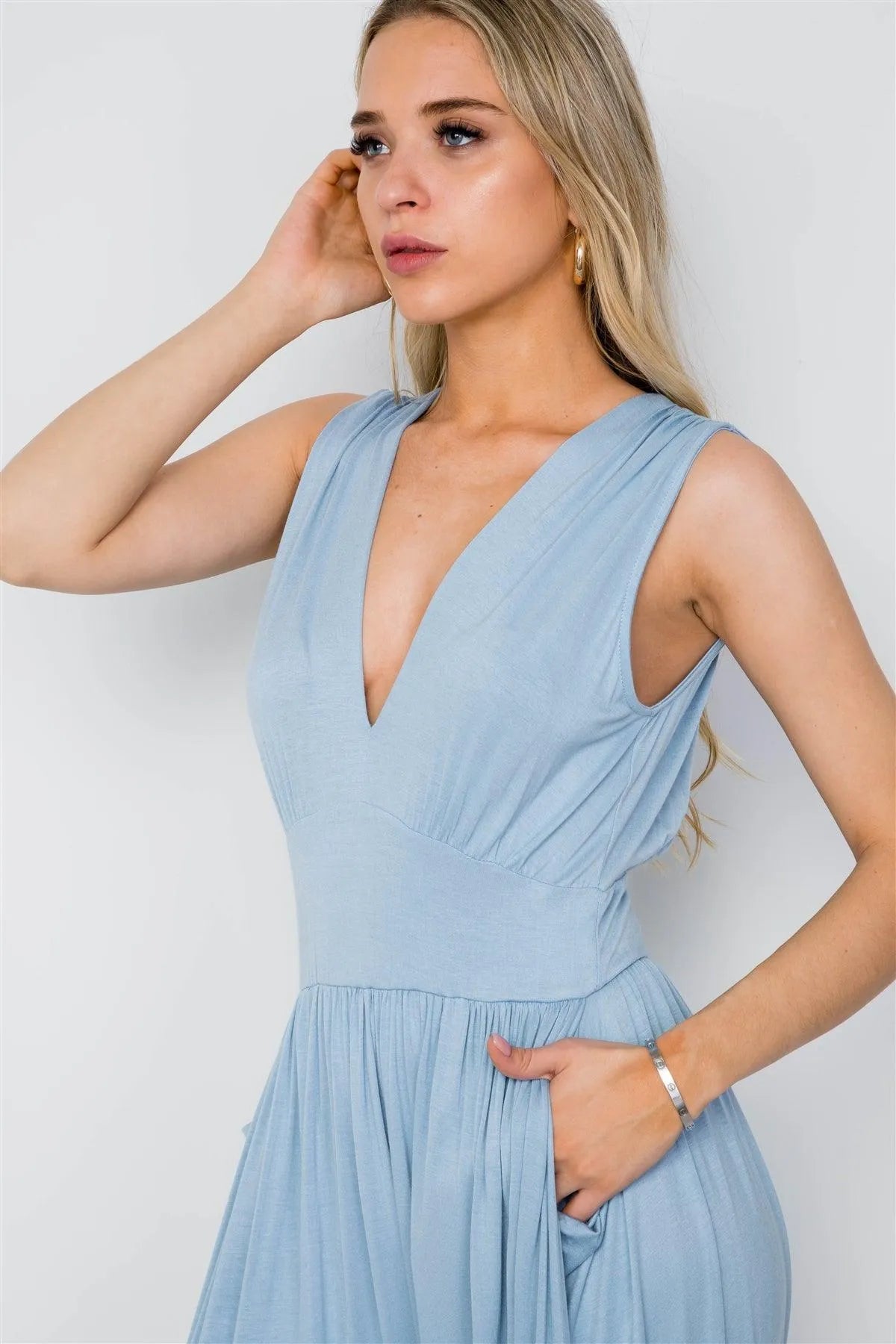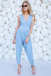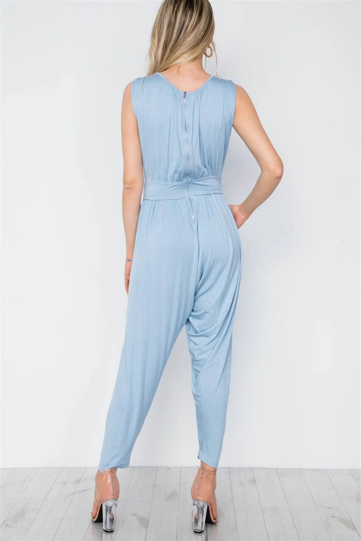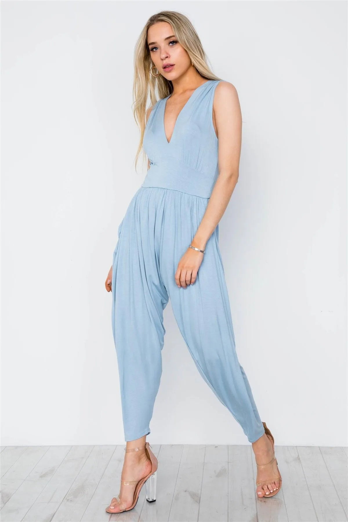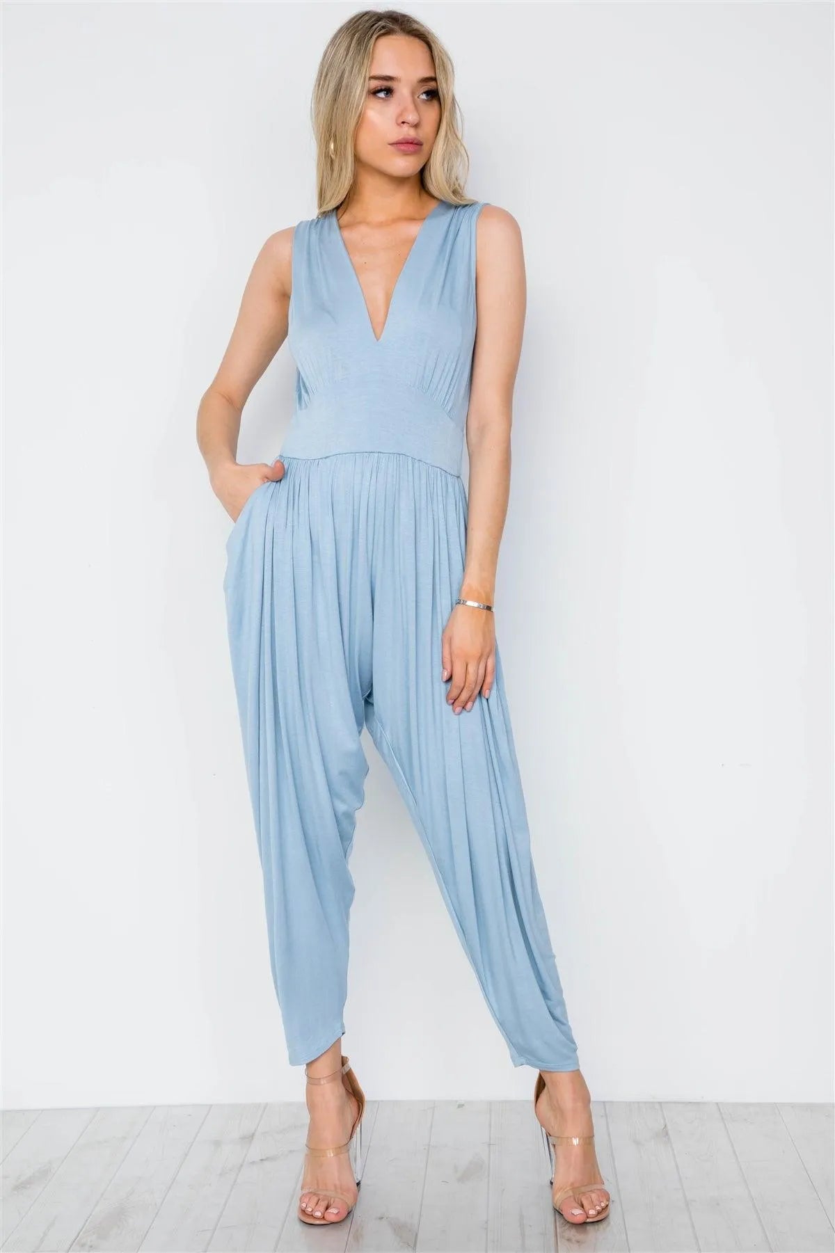Blue V-Neck Loose Fit Harem Jumpsuit / 2-2-2