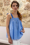 Blue & White Plaid Cotton Sleeveless Self-Tie Straps Top /1-2-2-1
