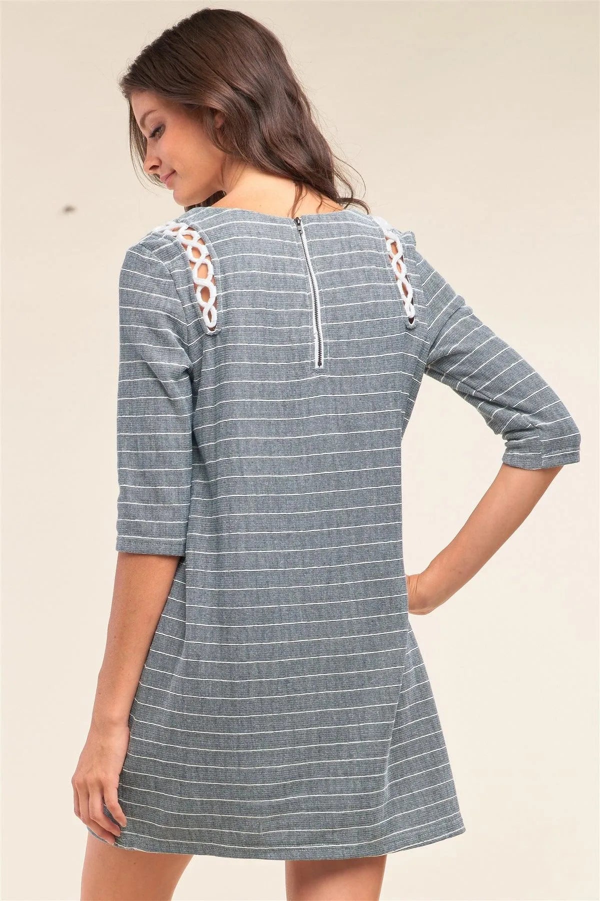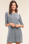 Striped Print Rope Loop Trim Detail Crew Neck Loose Fit Mini Dress /1-3-1