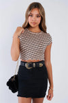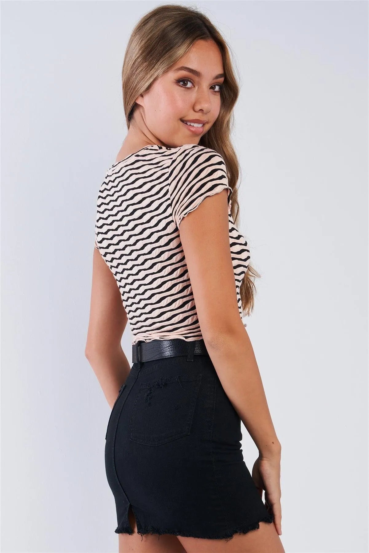 Blush & Black Textured Retro Striped Ruffled Hem Crop Tee /3-2-1