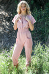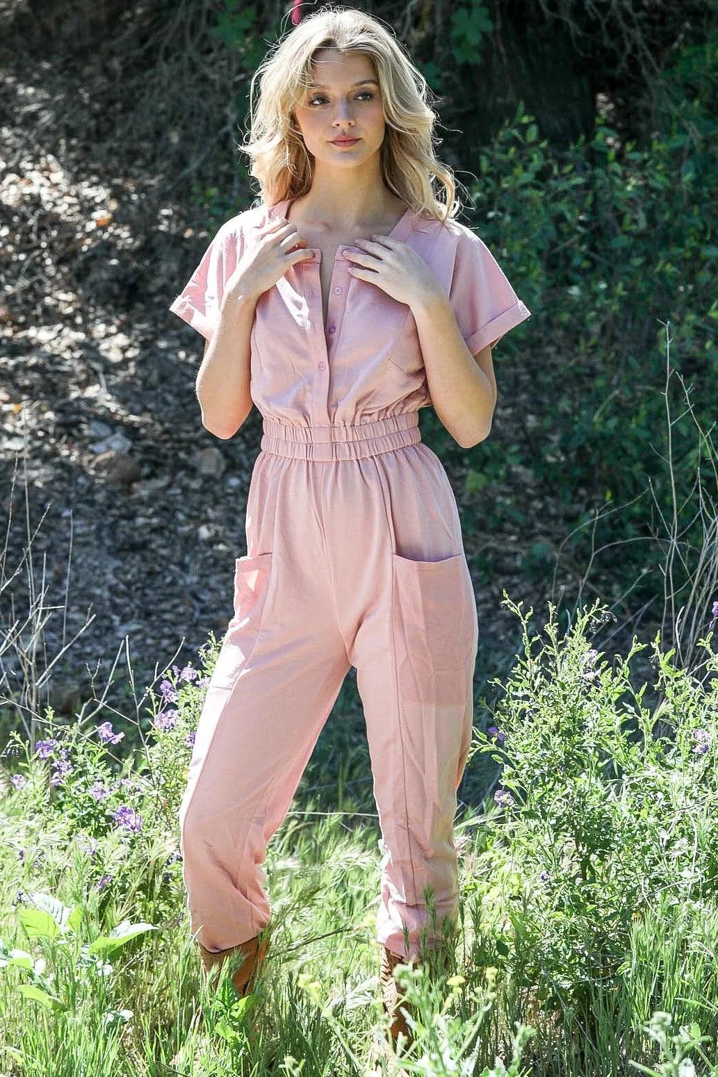 Blush Button Up Contrast Pocket Detail Short Sleeve Jumpsuit /2-2-2