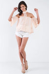 Blush Cold Shoulder Halter Neck Choker Crochet Detail Top /2-2-2