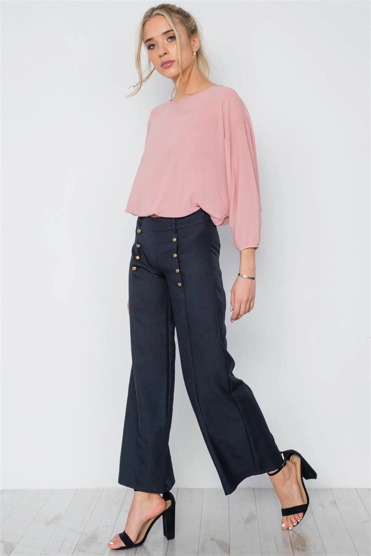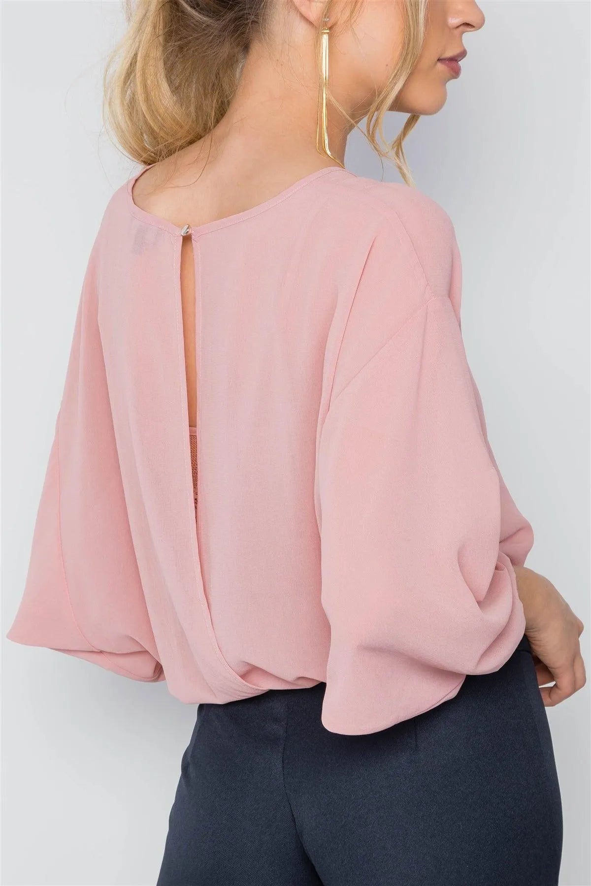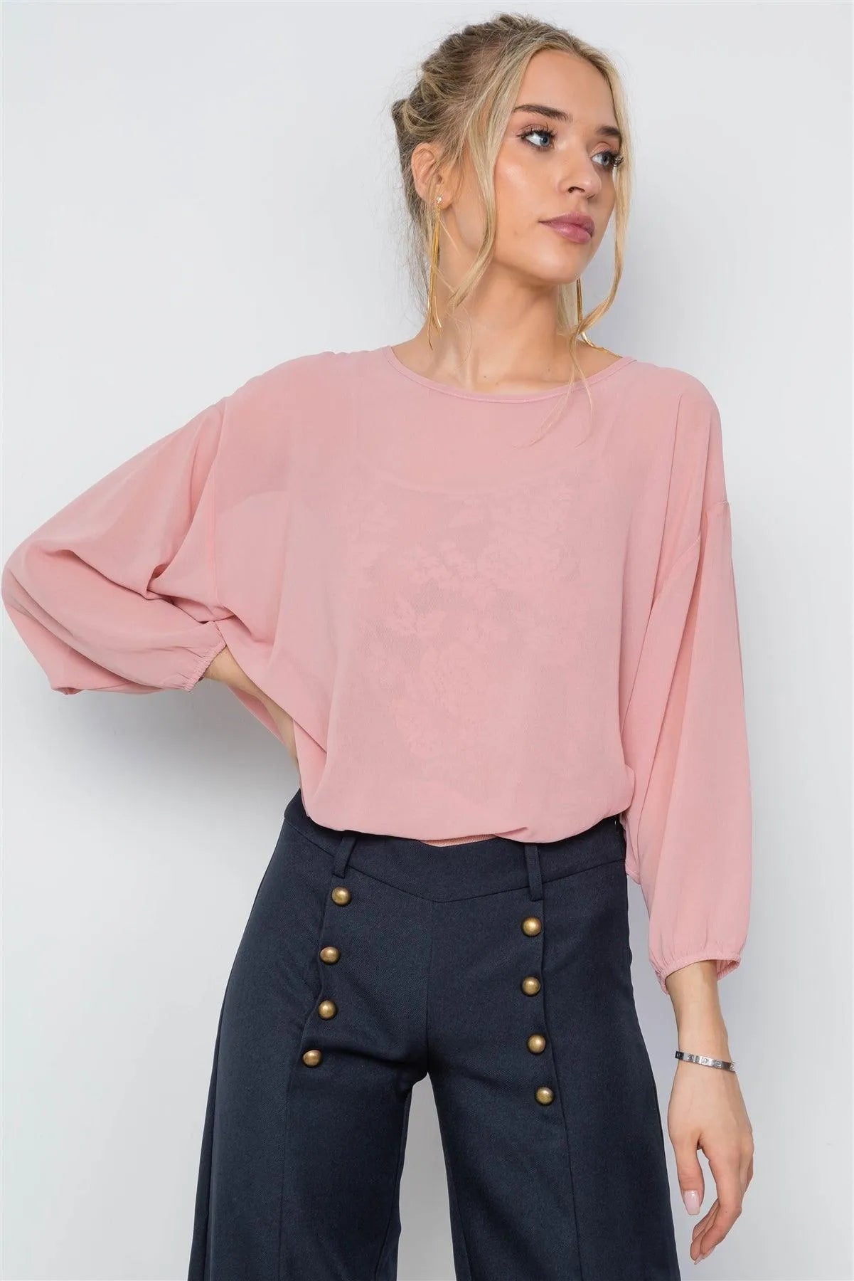 Blush Combo Lace Chiffon Batwing Bodysuit /2-1-2