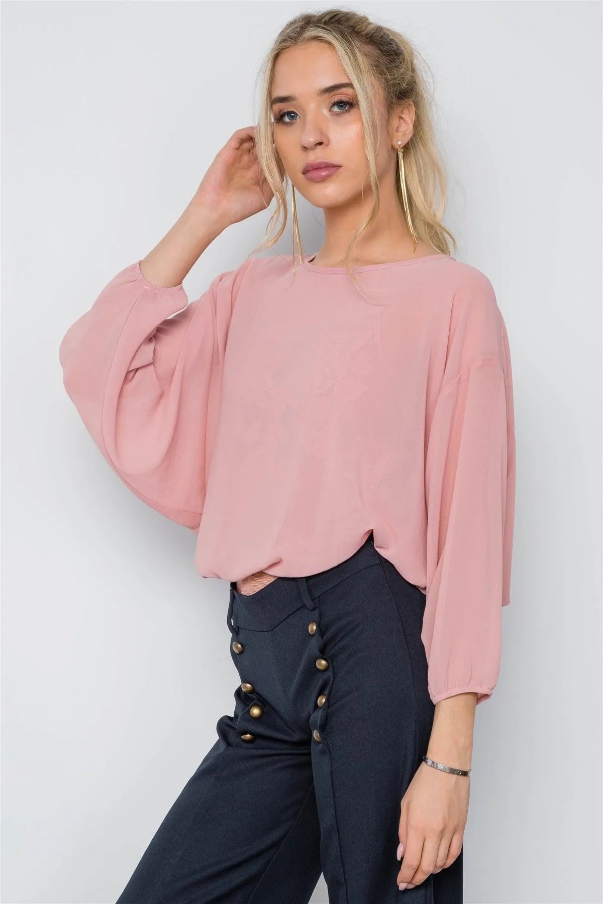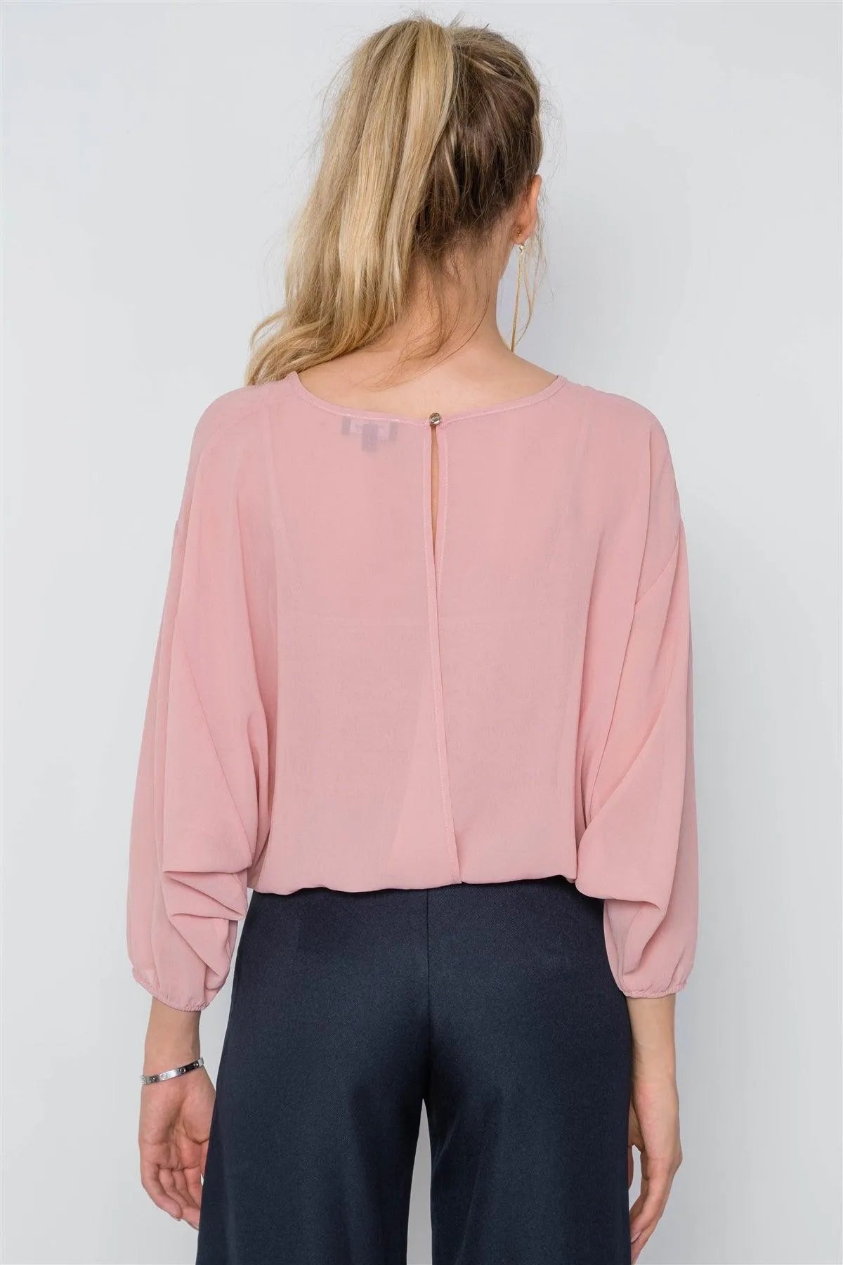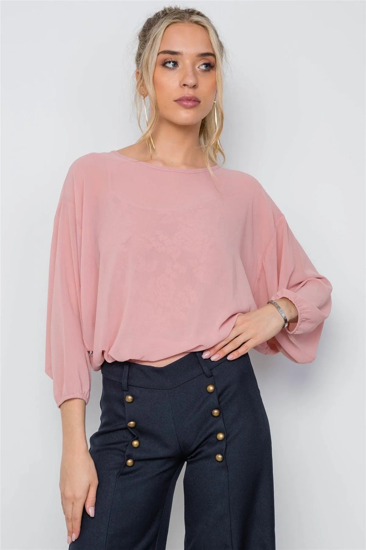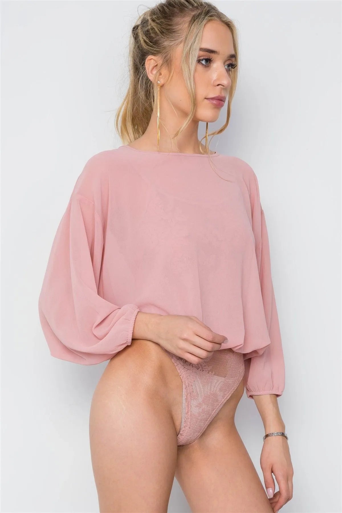 Blush Combo Lace Chiffon Batwing Bodysuit /2-2-2