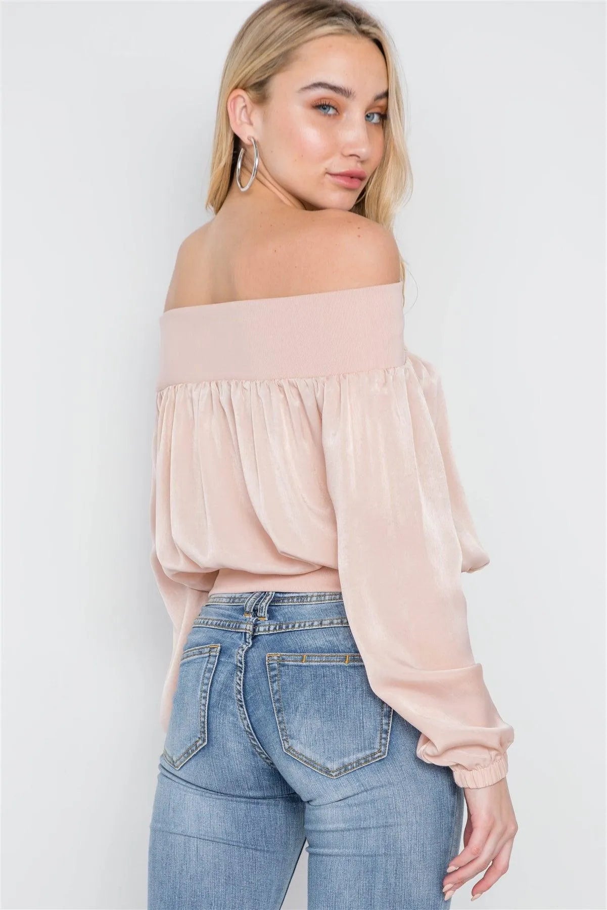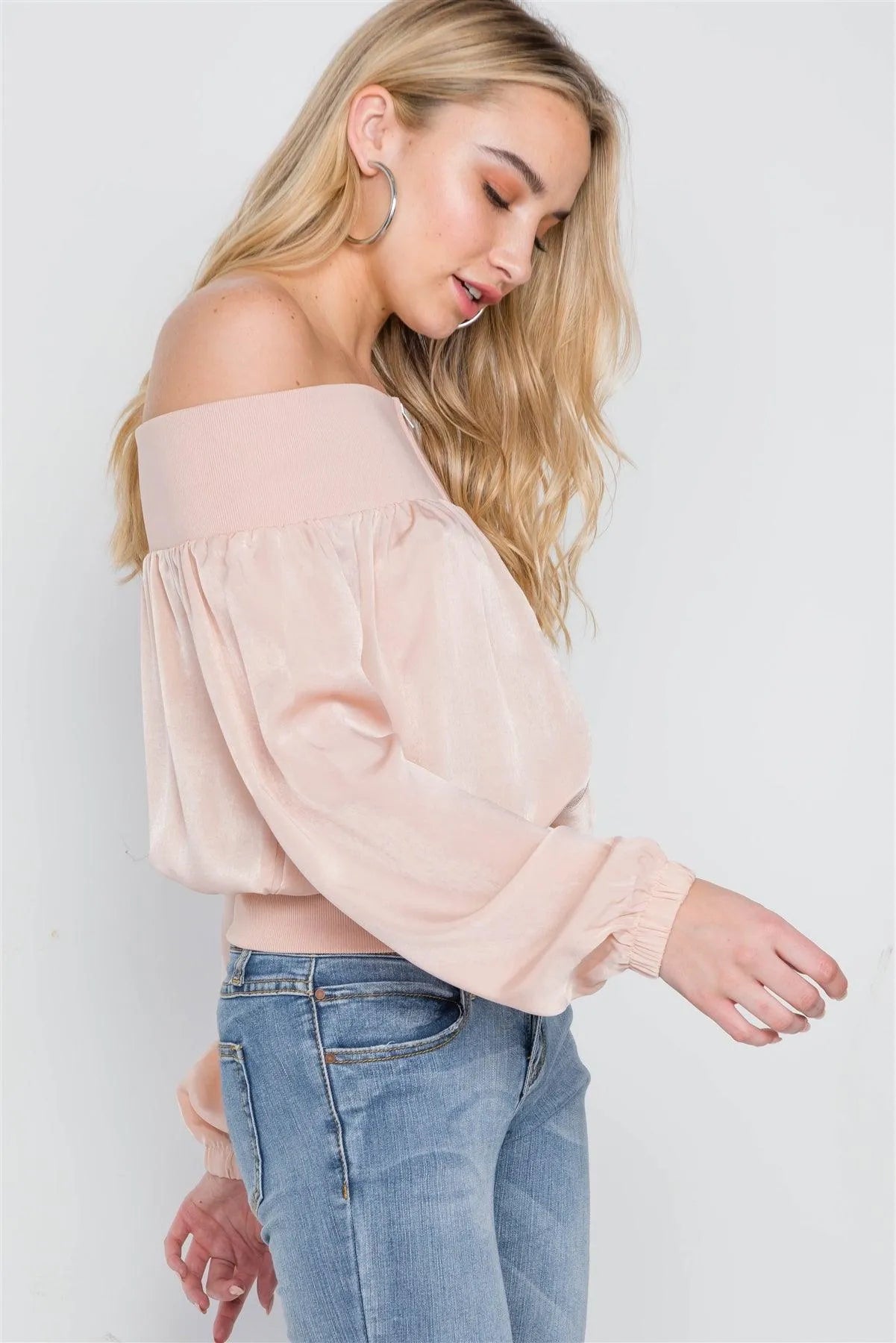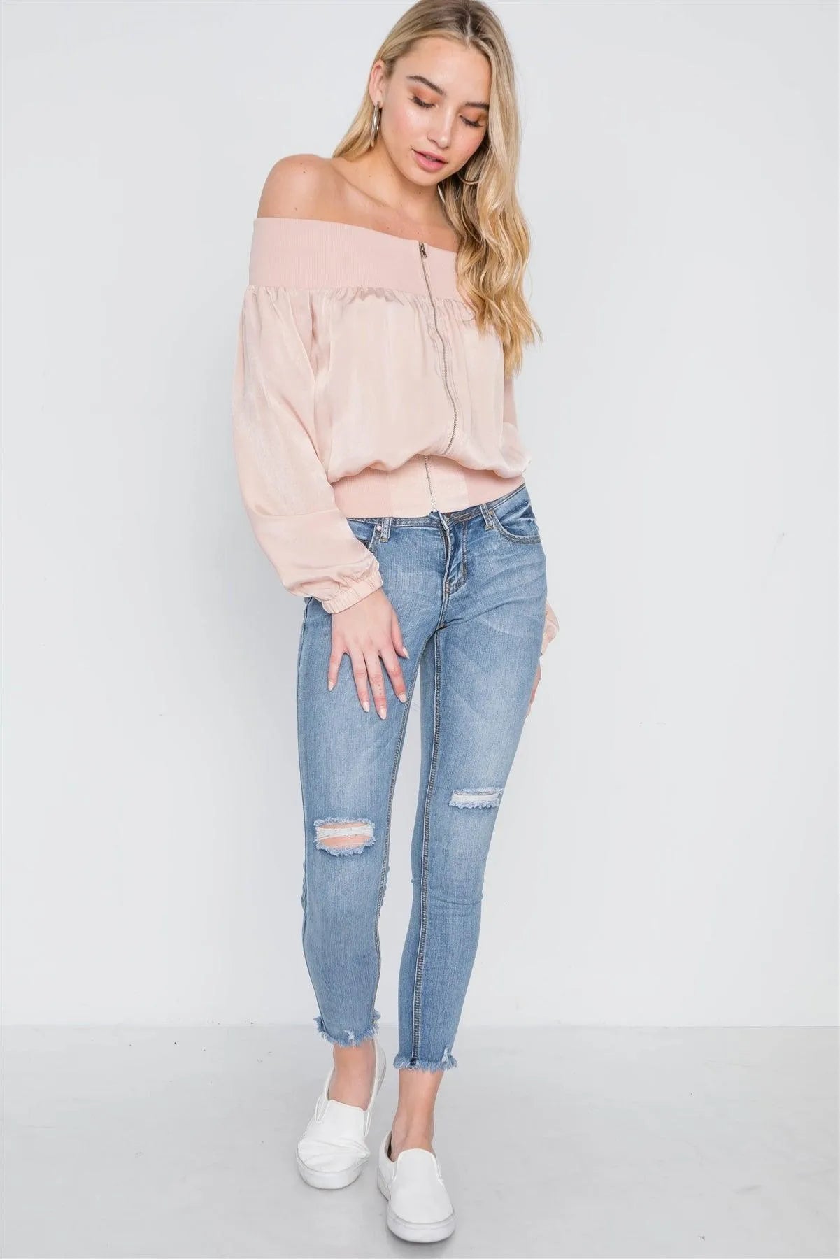 Blush Off-The-Shoulder Light Zip-Up Bomber Jacket /1-2-1