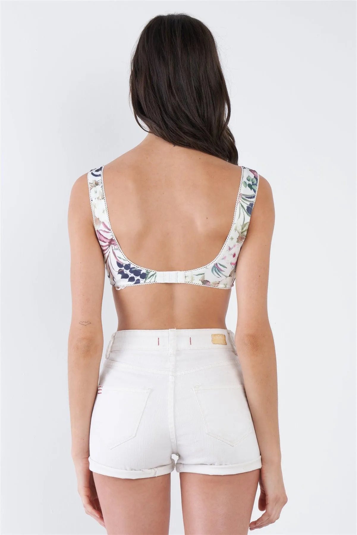 Bra Features: full support, wire cup bra, lace trim, solid white, floral print on side and shoulders, clasp back, lined, stretchy.Model is 5'9 wearing a size Small ( Waist: 23.5", Bust: 32B, Hips: 36")Item Measurements: Length: 11" , Bust: 26"Item comes pre-packed with hang tagsTrue to sizeAlso available in Teal