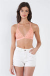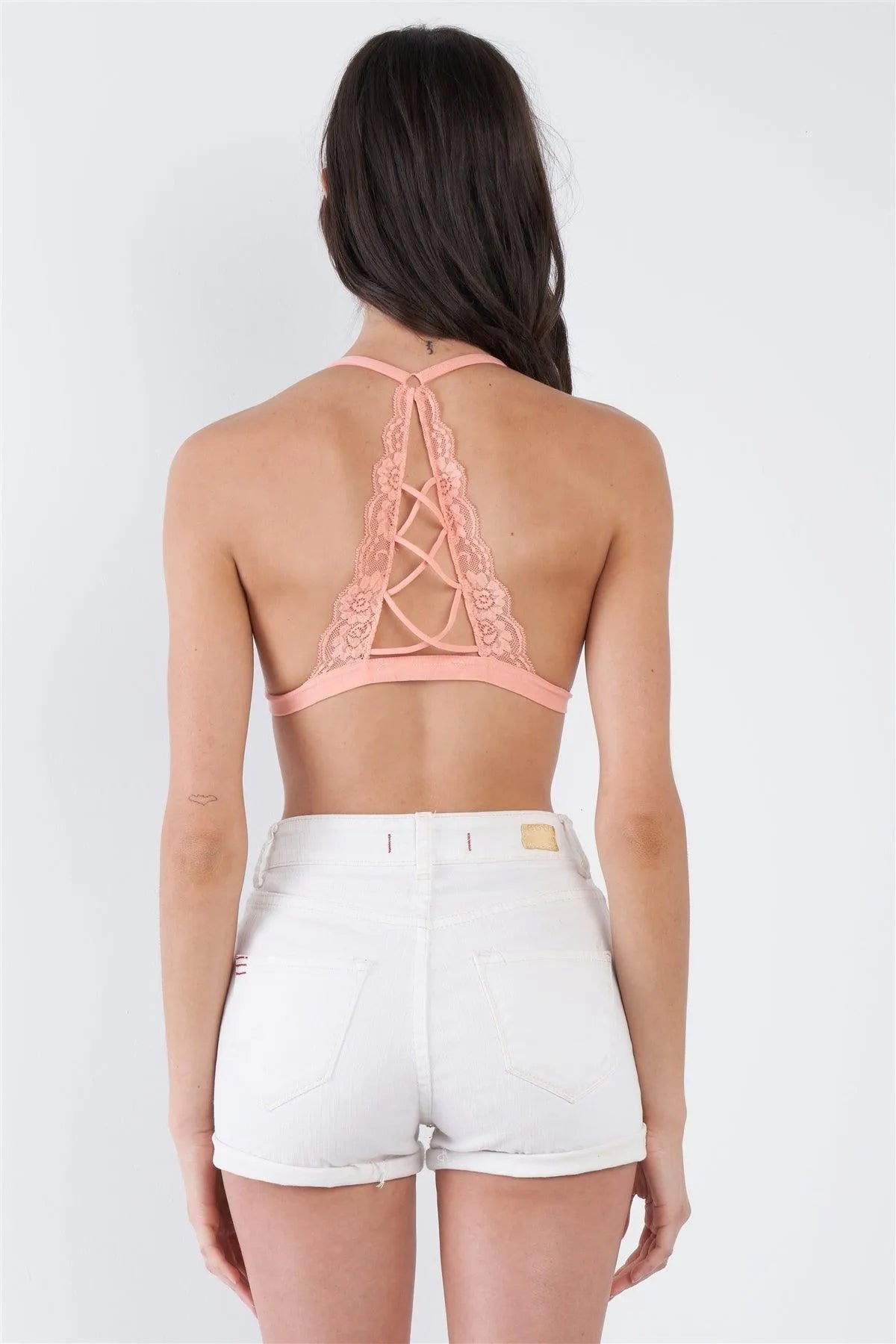 Blush Pink Cut Out Lace Up Raserback Floral Lace Bralette /3-2-1