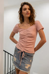 Blush Ribbed Front Ruched Detail Top /1-2-2-1