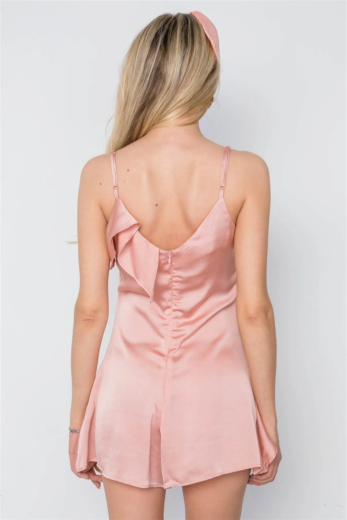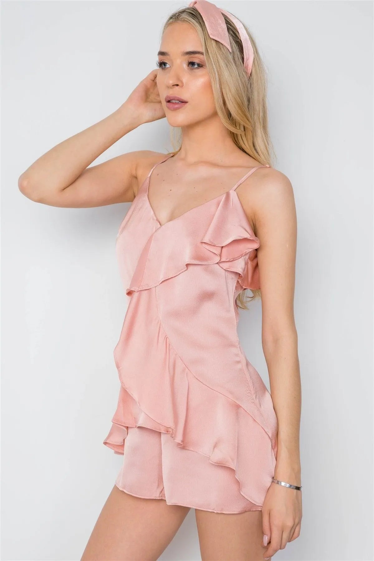 Blush Satin Cami Ruffle Flounce Romper /2-2-2