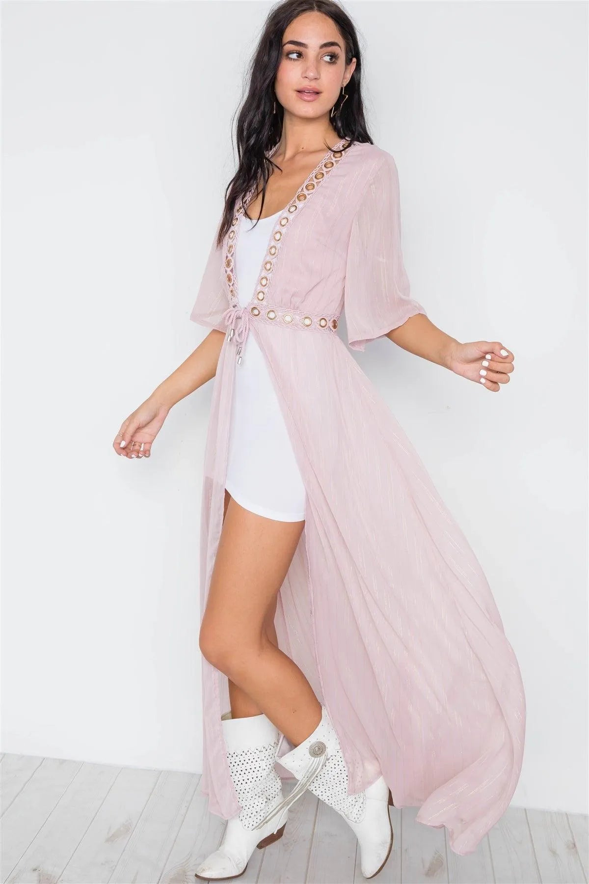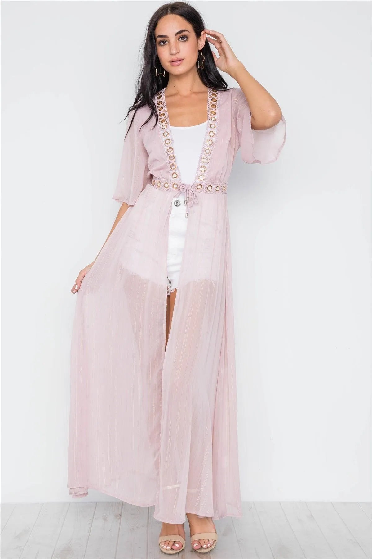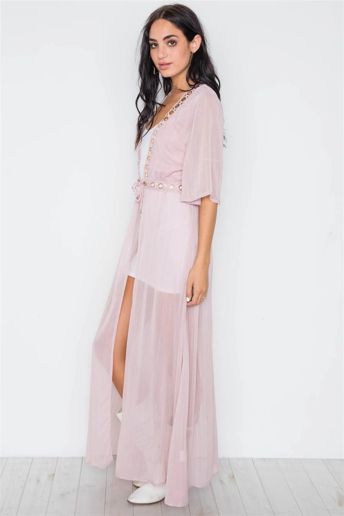 Blush Sheer Short Sleeve Chiffon Cover-Up /1-2