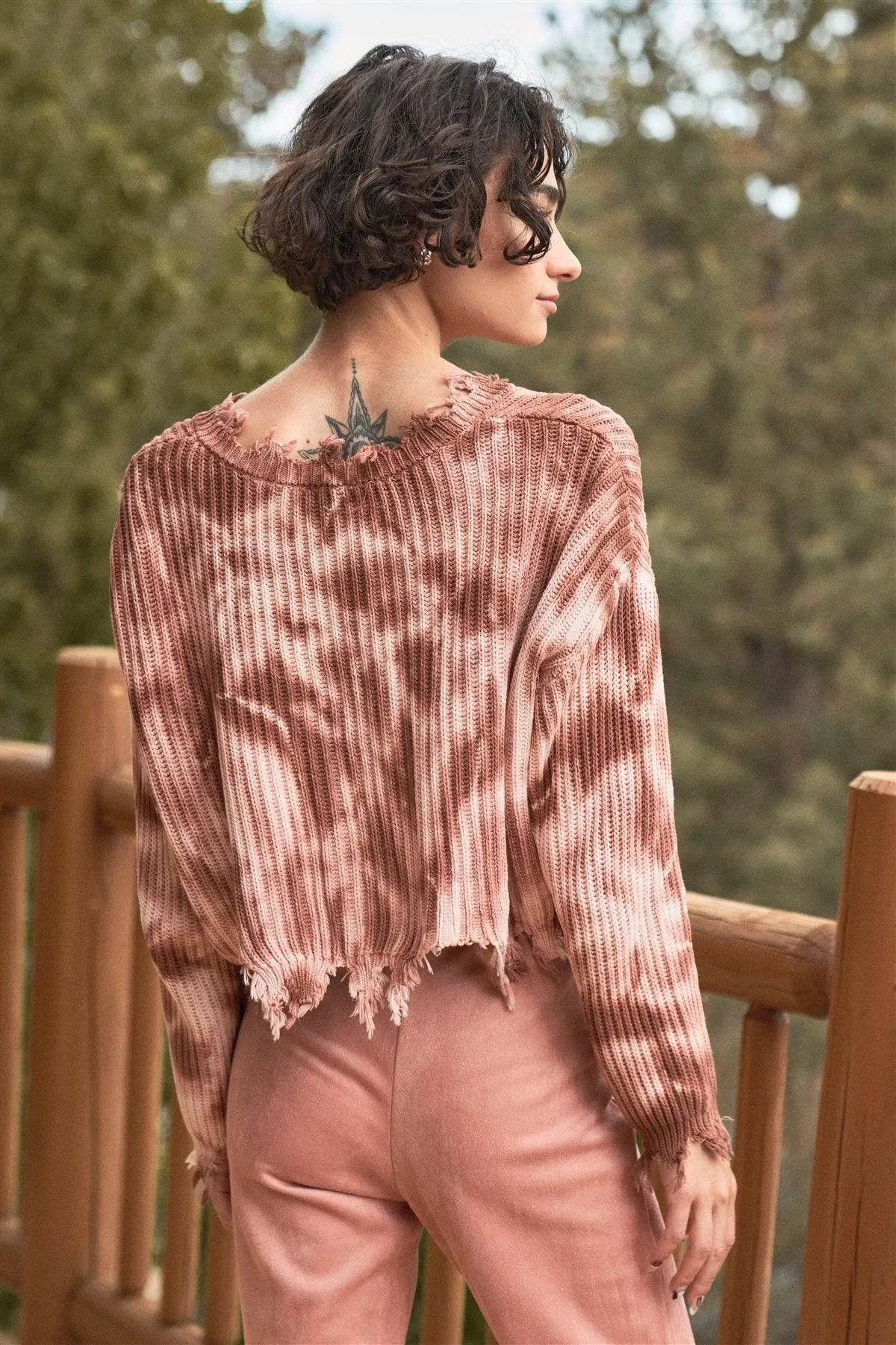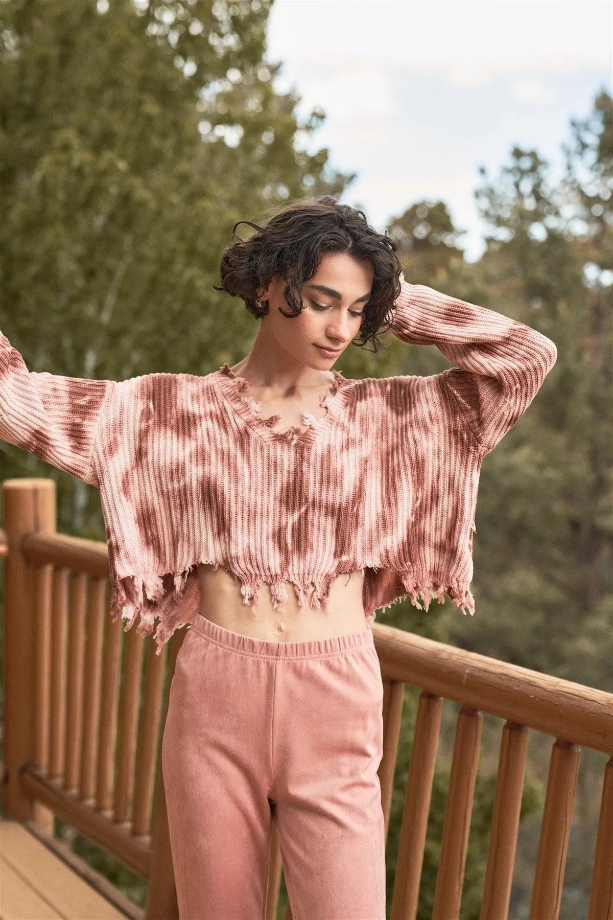 🖤Item Features: Dusted blush, stained color, V-neckline, long sleeve, distressed frayed hem trim, cropped length, very relaxed fit, unlined, stretchy, non-sheer, casual, super trendy, stylish, warm, comfy, fashionable, boho, modern, fall/winter collection