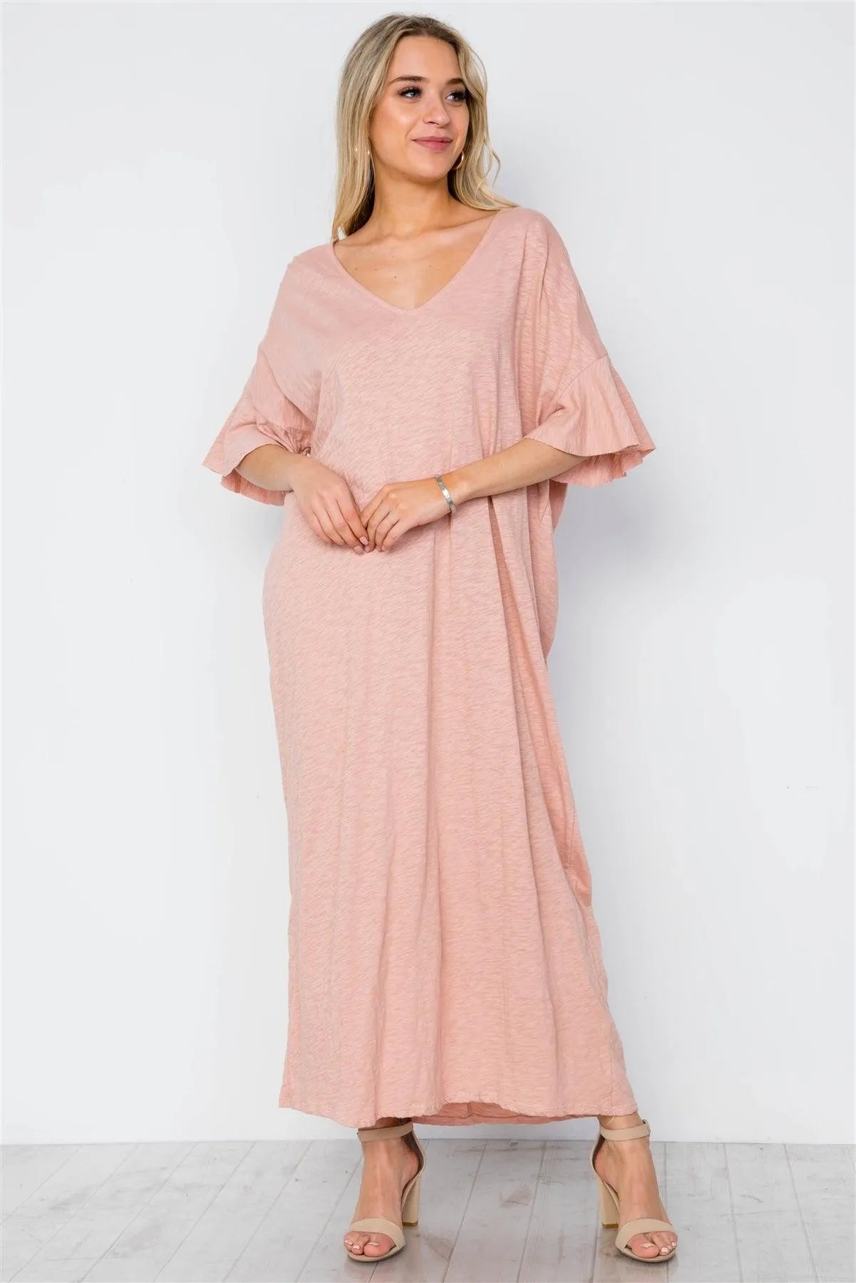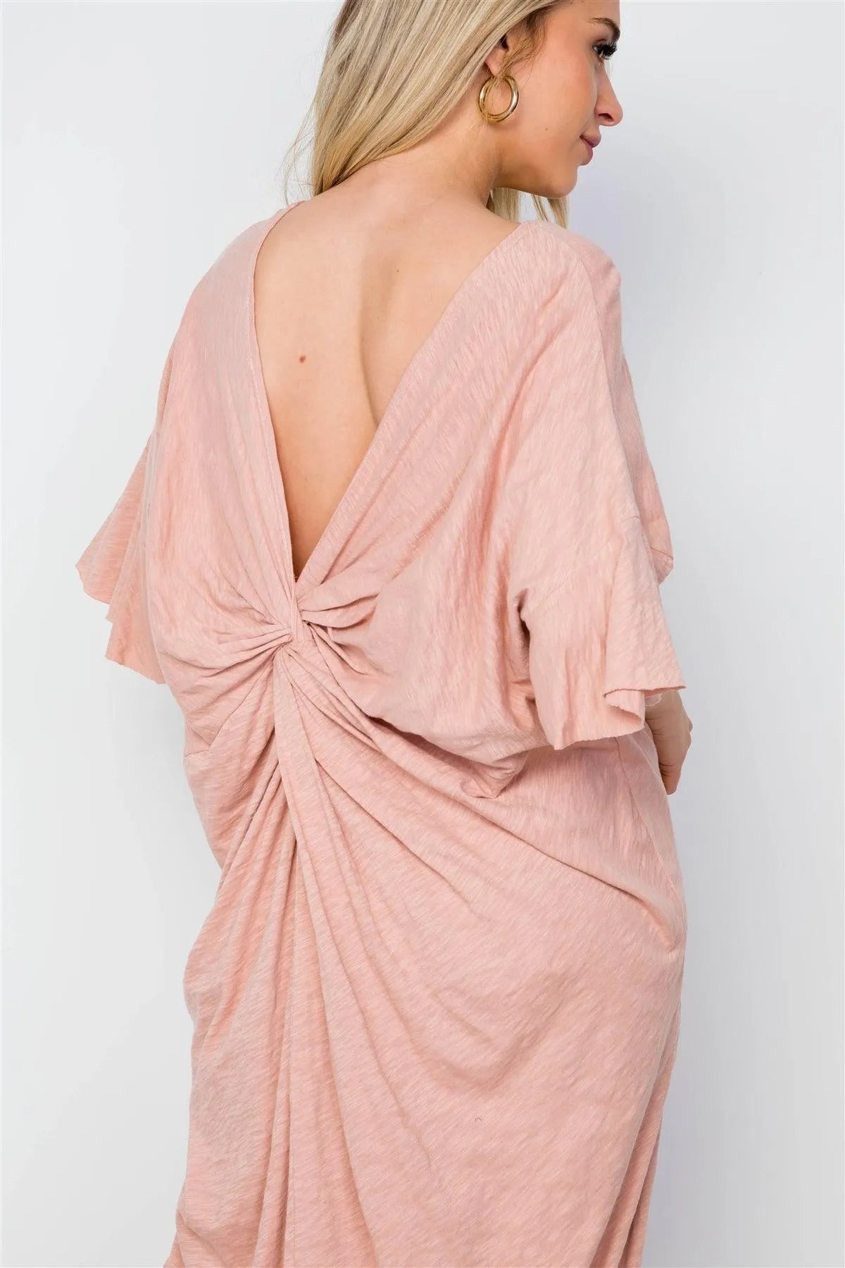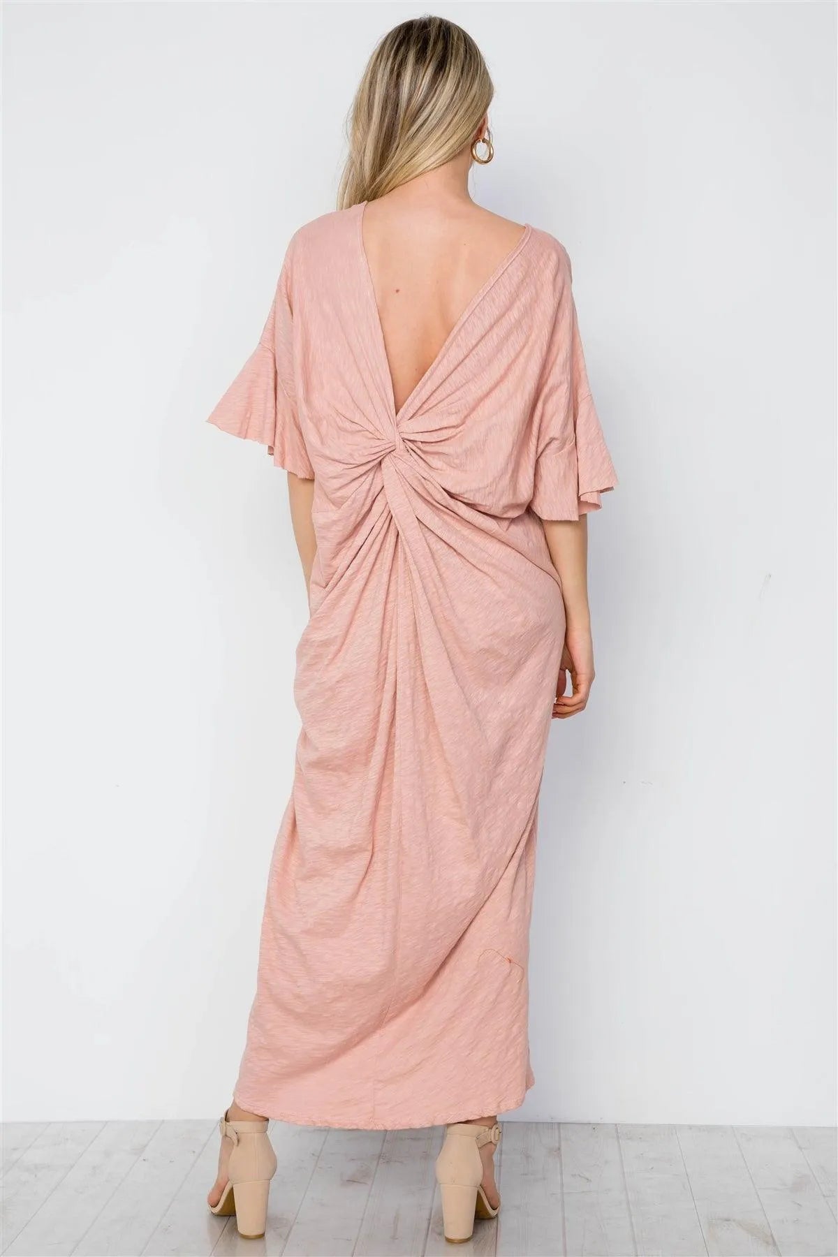 Blush Twist Back Short Sleeve Maxi Boho Shirt Dress
