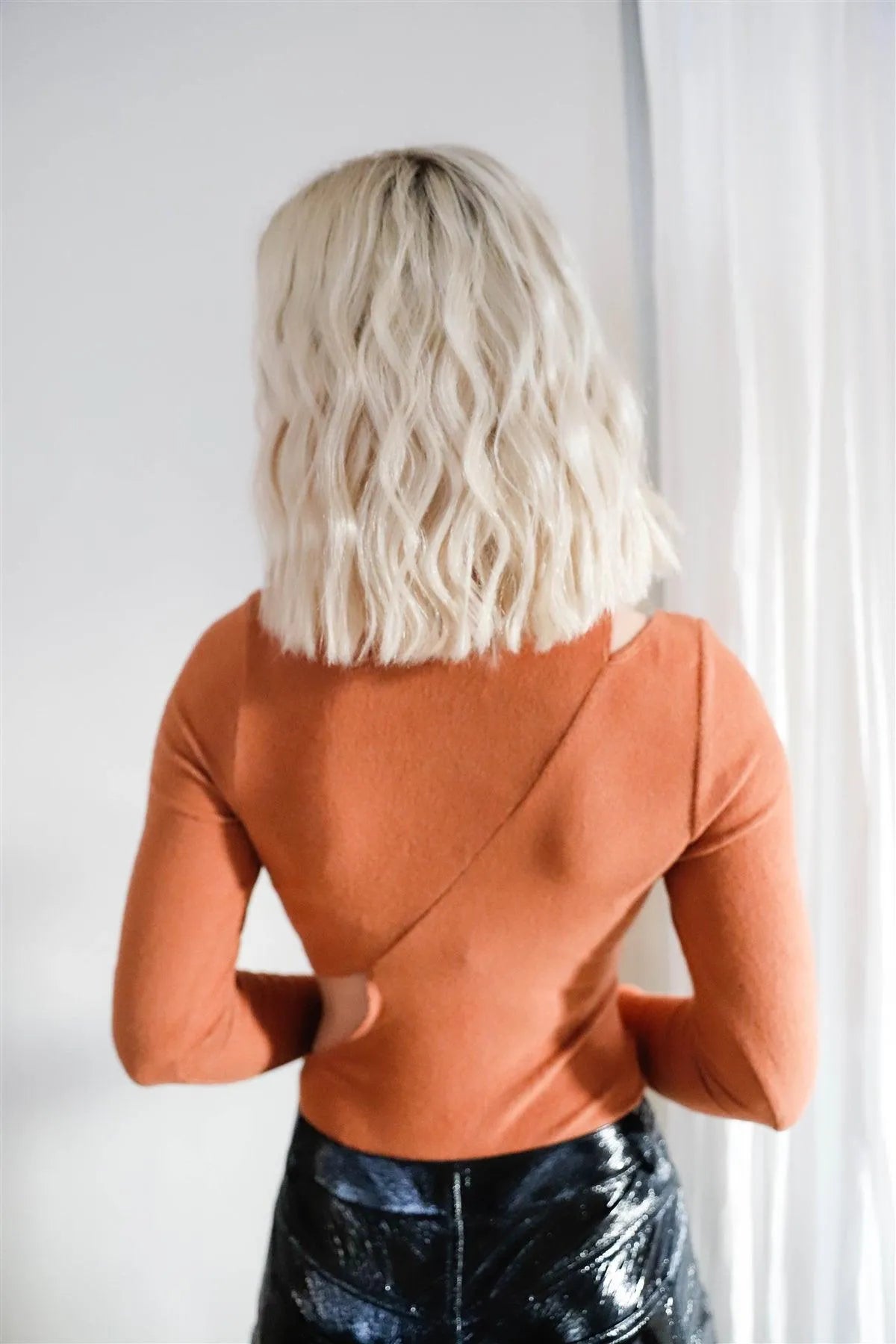 🖤 Item Features: Brick, solid color, flannel material, cut-out details, mock neckline, slim fit, unlined, stretchy, not see through, casual, street style, trendy, stylish, everyday look