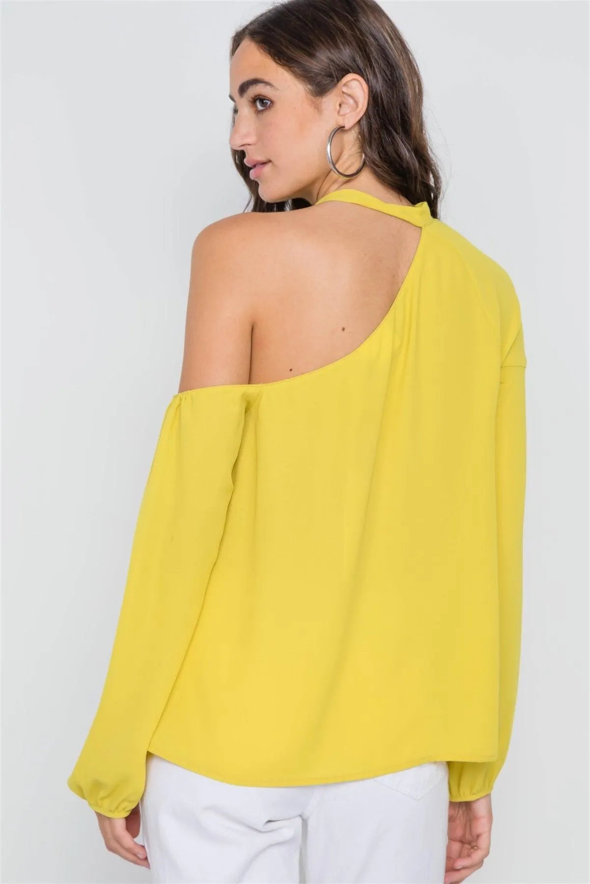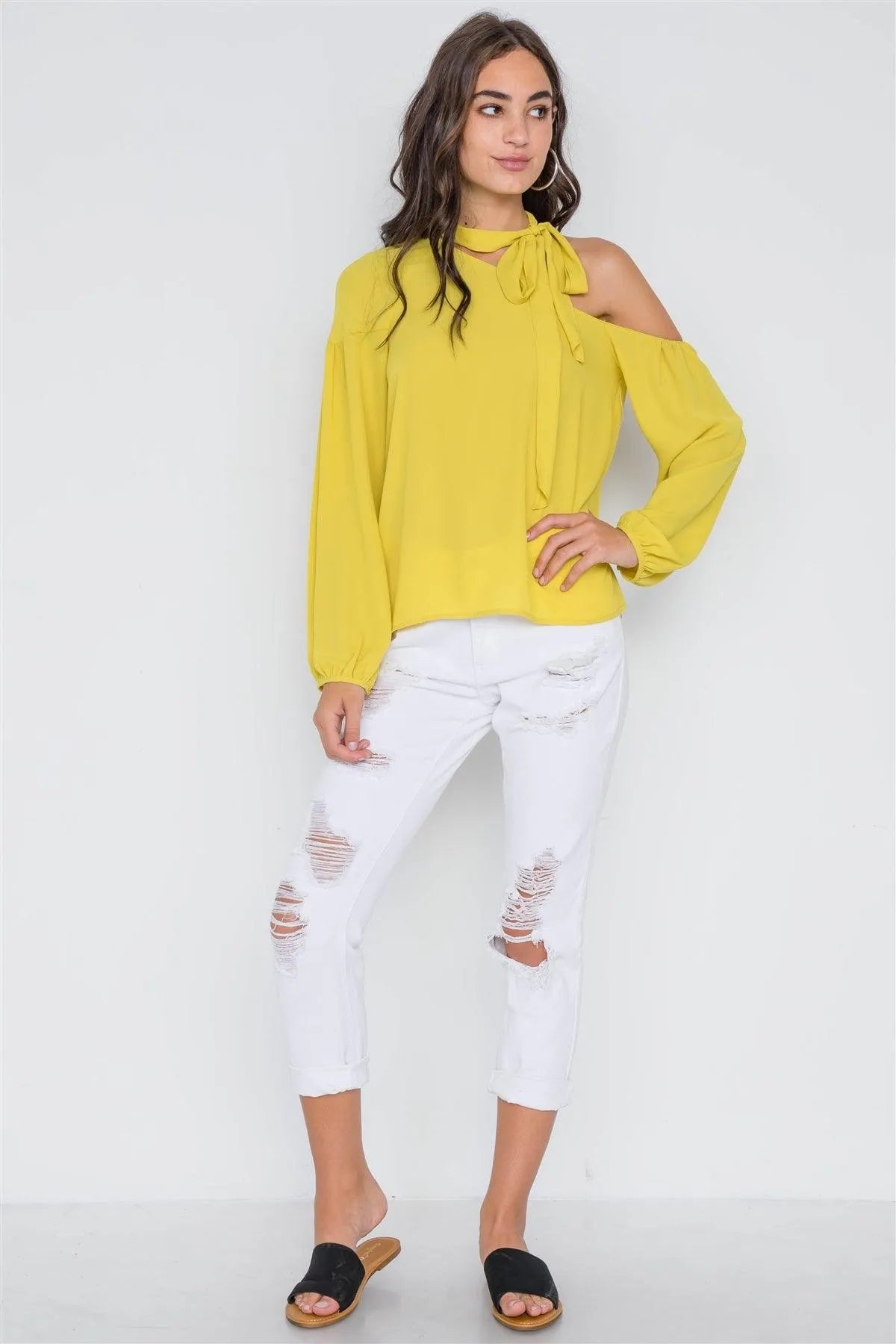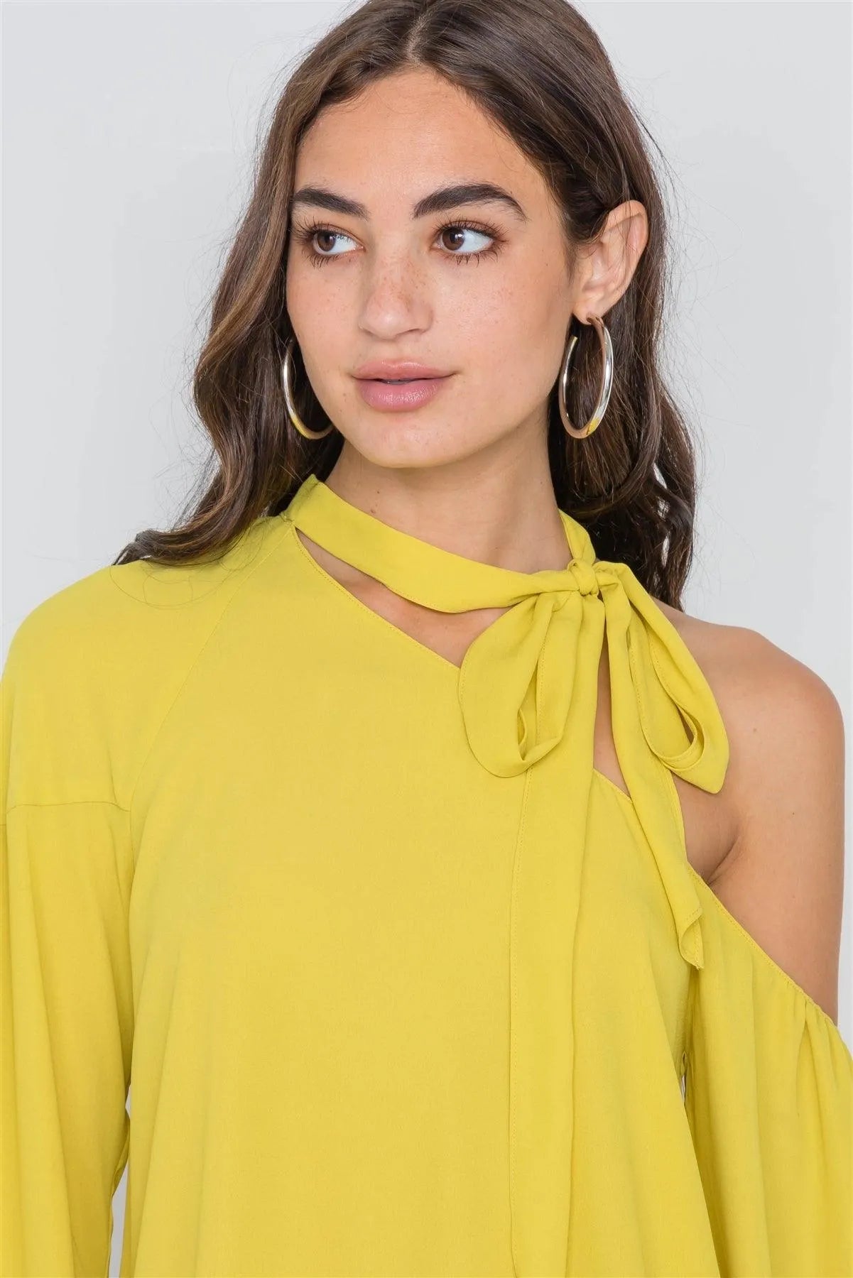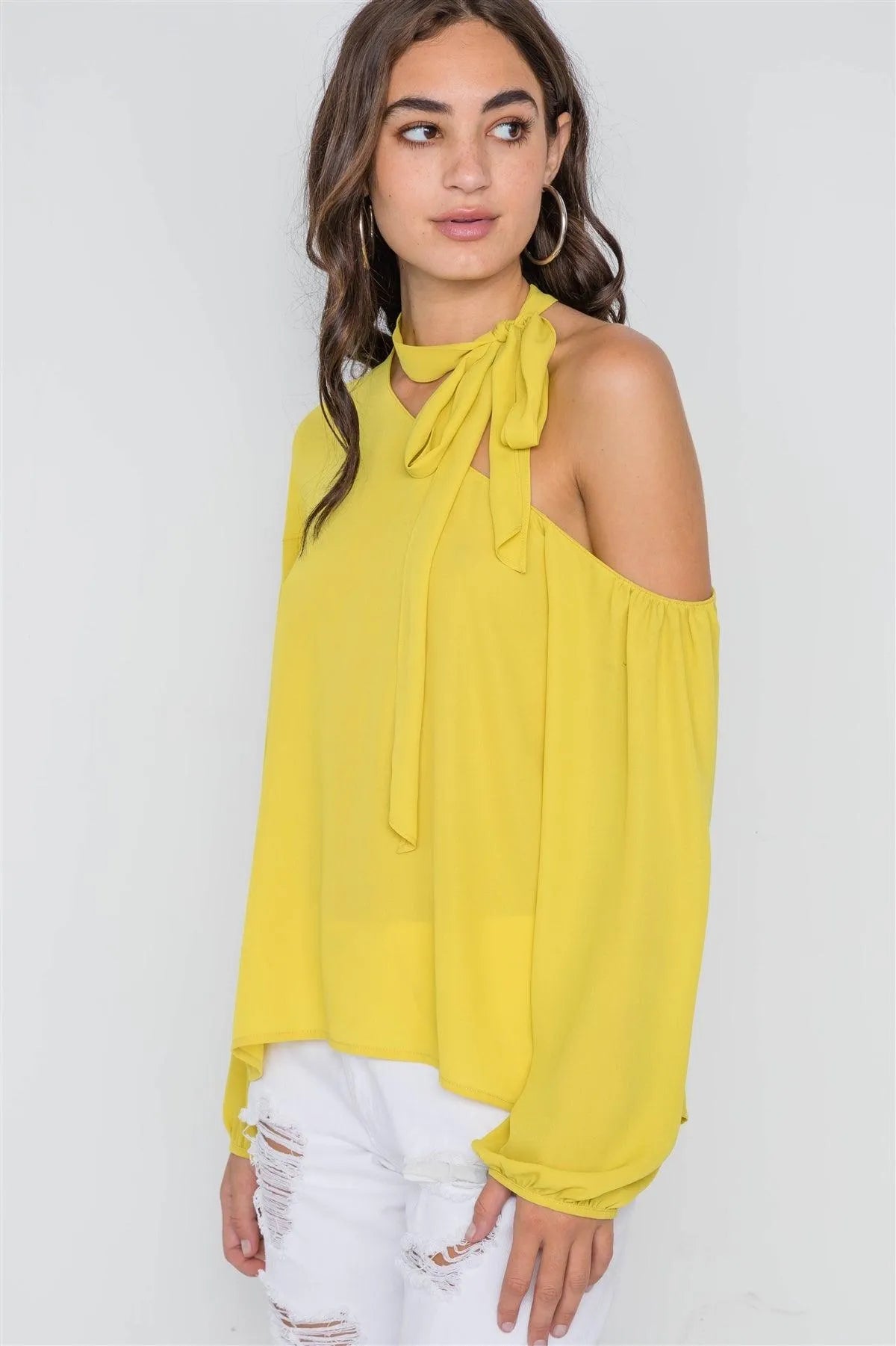 Bright Mustard Open Shoulder Front-Tie Top /2-2-2