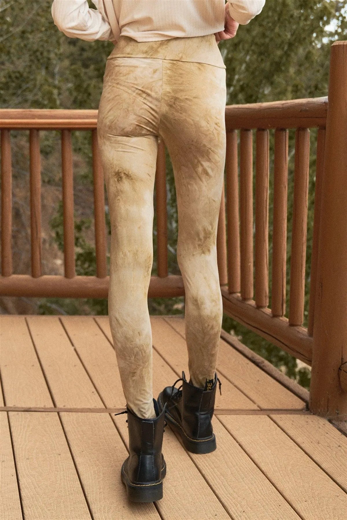 British Khaki Tie-Dye Print High-Waisted Leggings /3-2-1