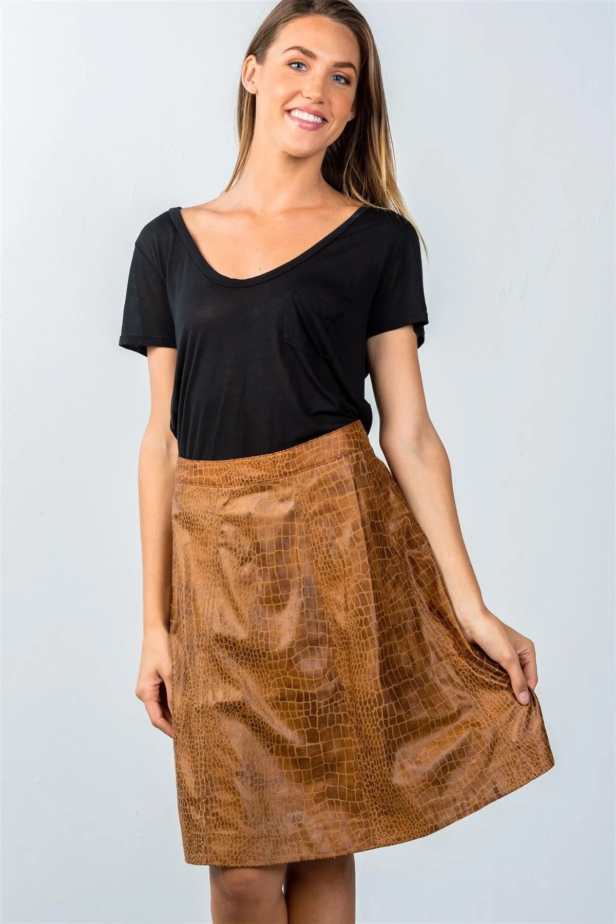Skirt features: mini length, animal printed, two side pockets, high waisted, back zipper and hook-and-eye closure, has a lining. Model is 5'8 wearing a size Small ( Waist: 25", Bust: 30A, Hips: 36")Item measurements: Length: 22", Waist: 28"