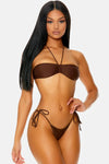 Chocolate Brown Grenada Bandeau Gathered Drawstring Tie Side Bikini Swimwear 2 Piece Set