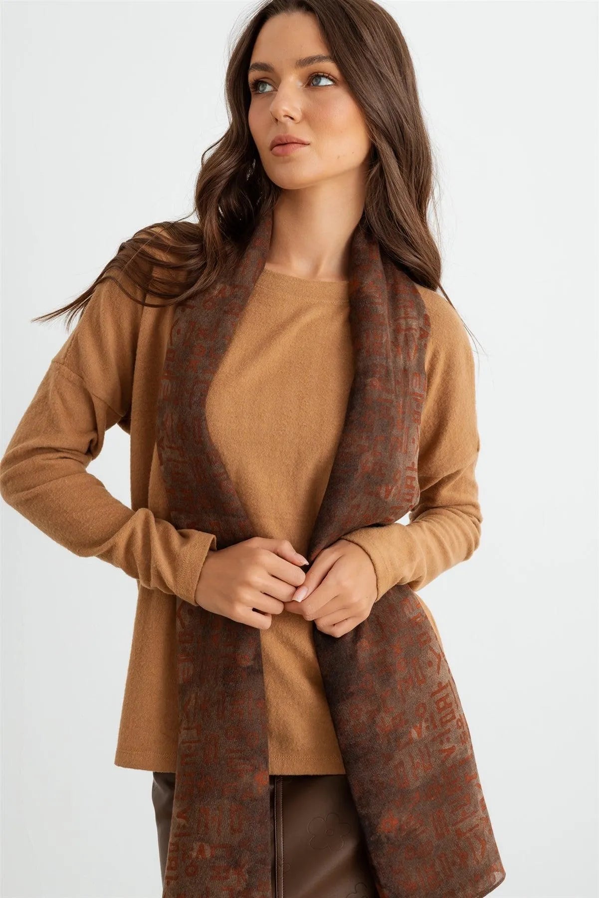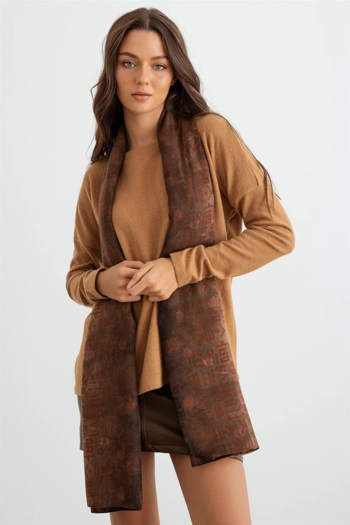 Brown Hangul Design Korean Languages Wrap Long Shawl Scarf