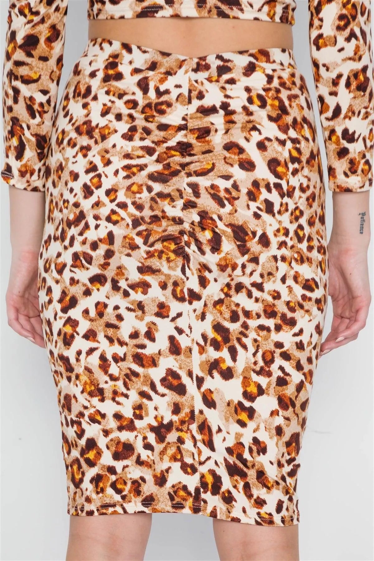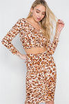 Brown Leopard Print Two Piece Crop Top Skirt Set /2-1