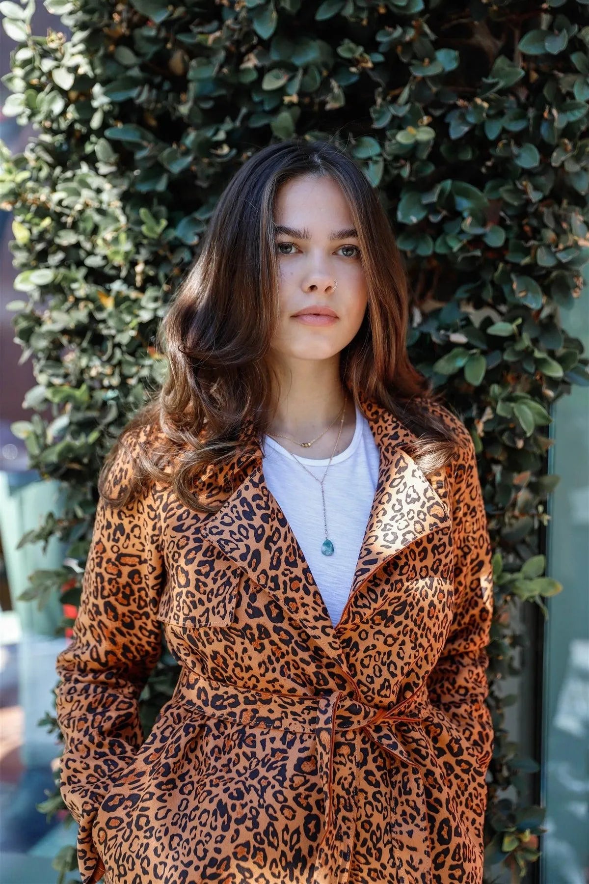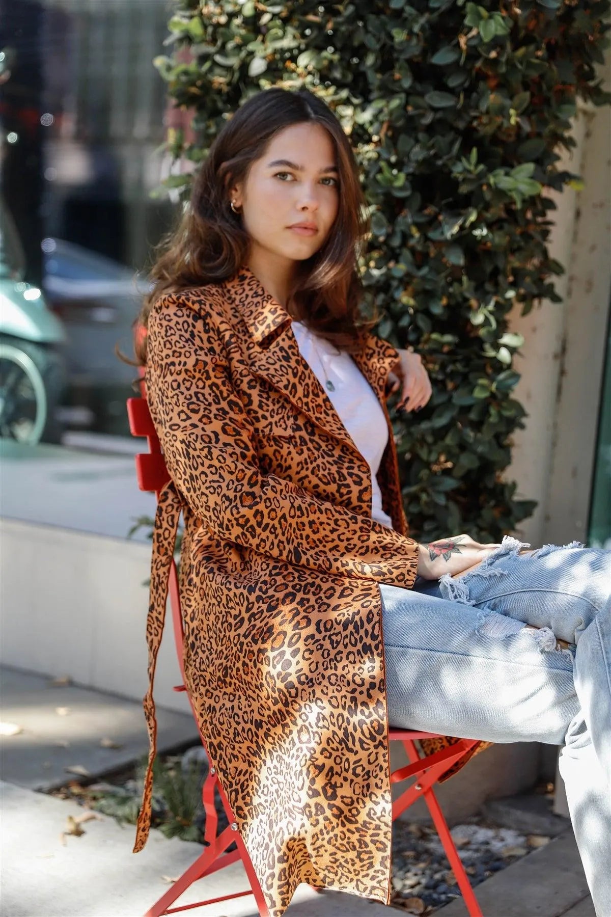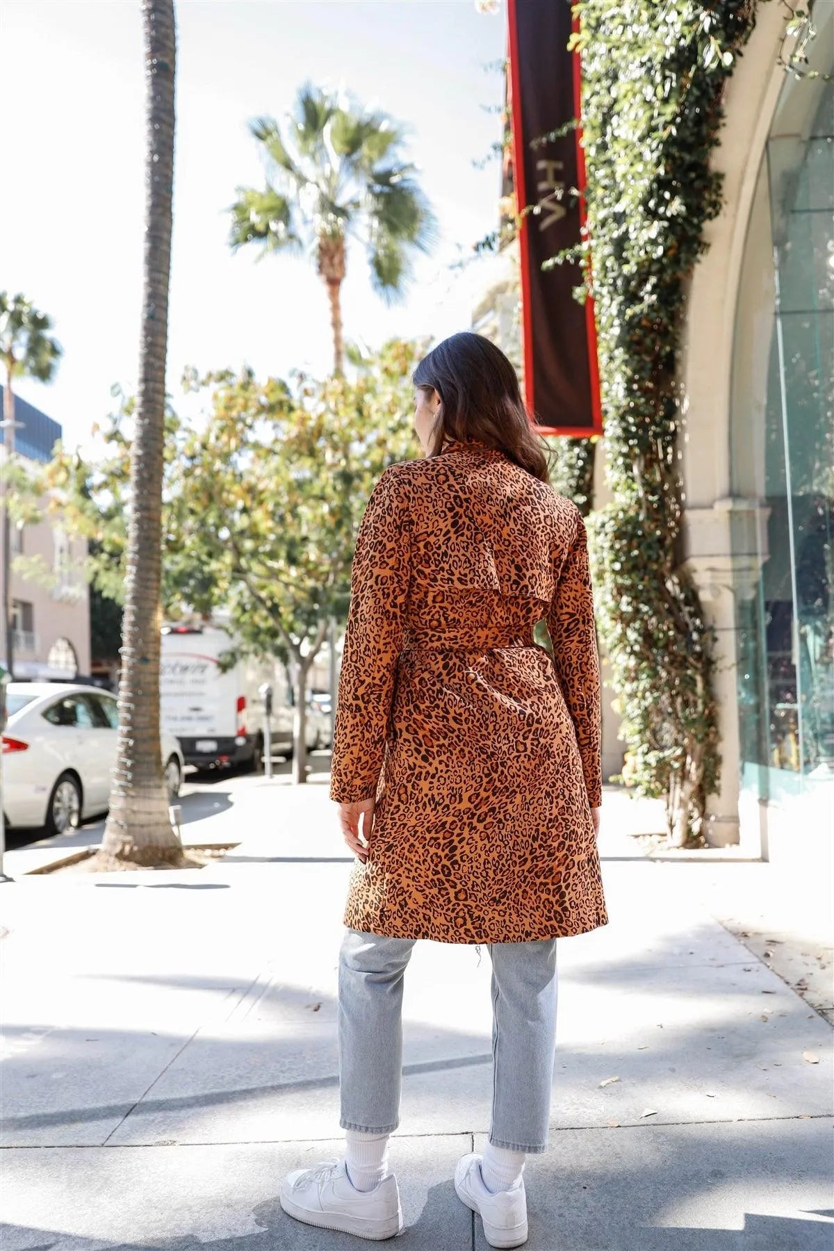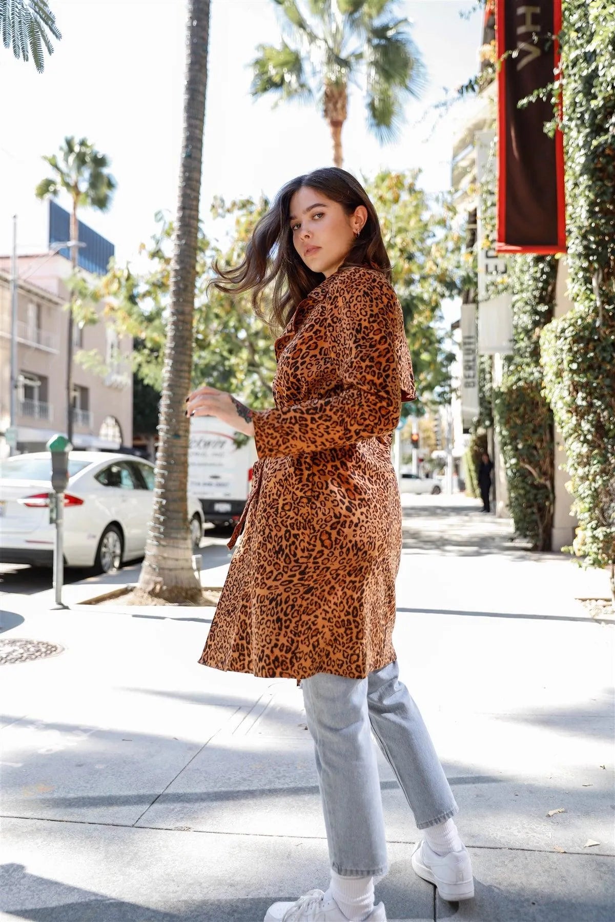 Brown Leopard Print Tie-Waist Vegan Suede Trench Coat /1-3-2