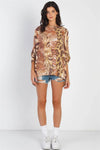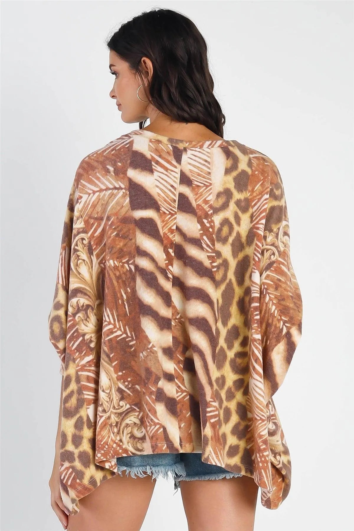 Brown Safari Print Flannel Dolman Midi Sleeve Top /2-1