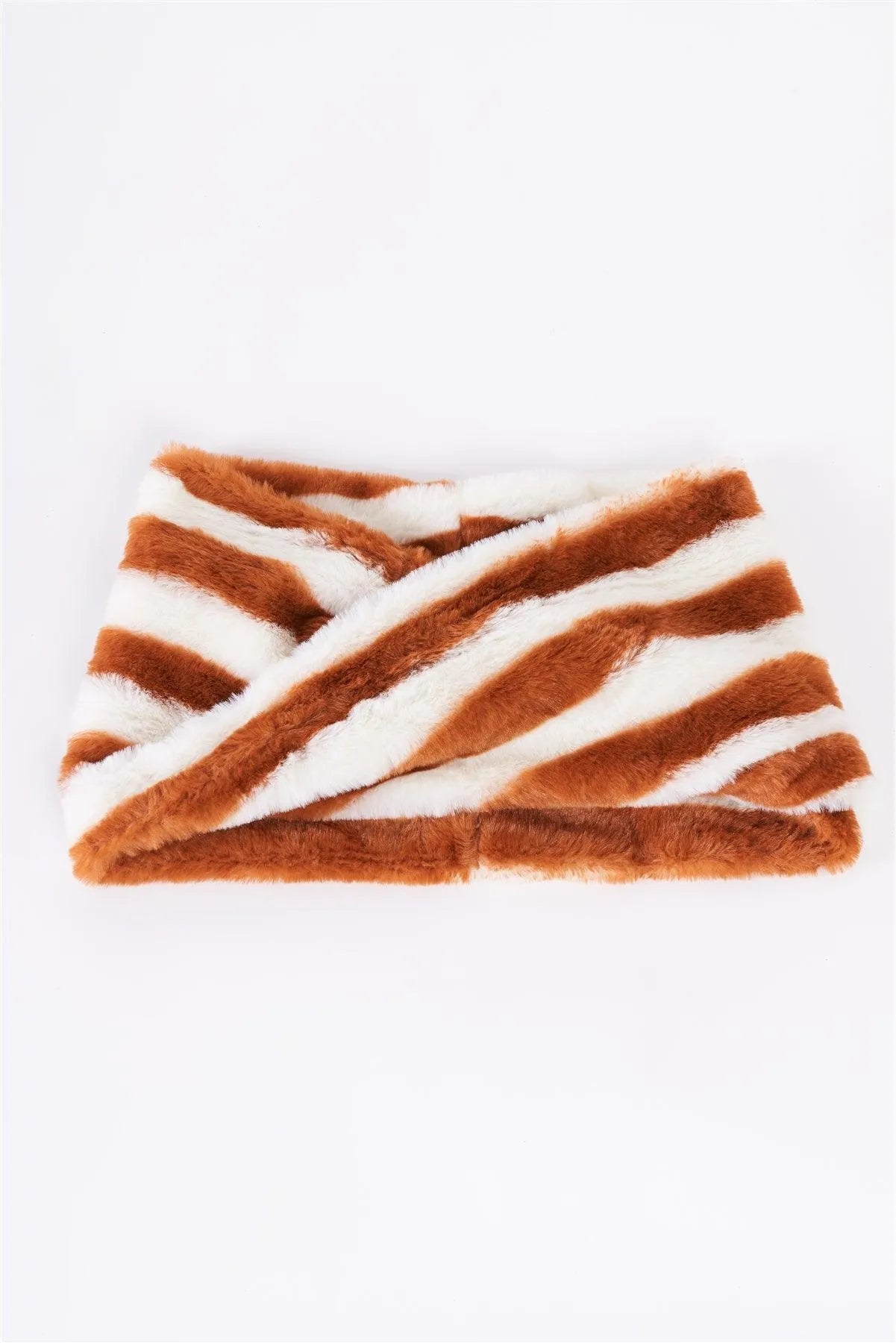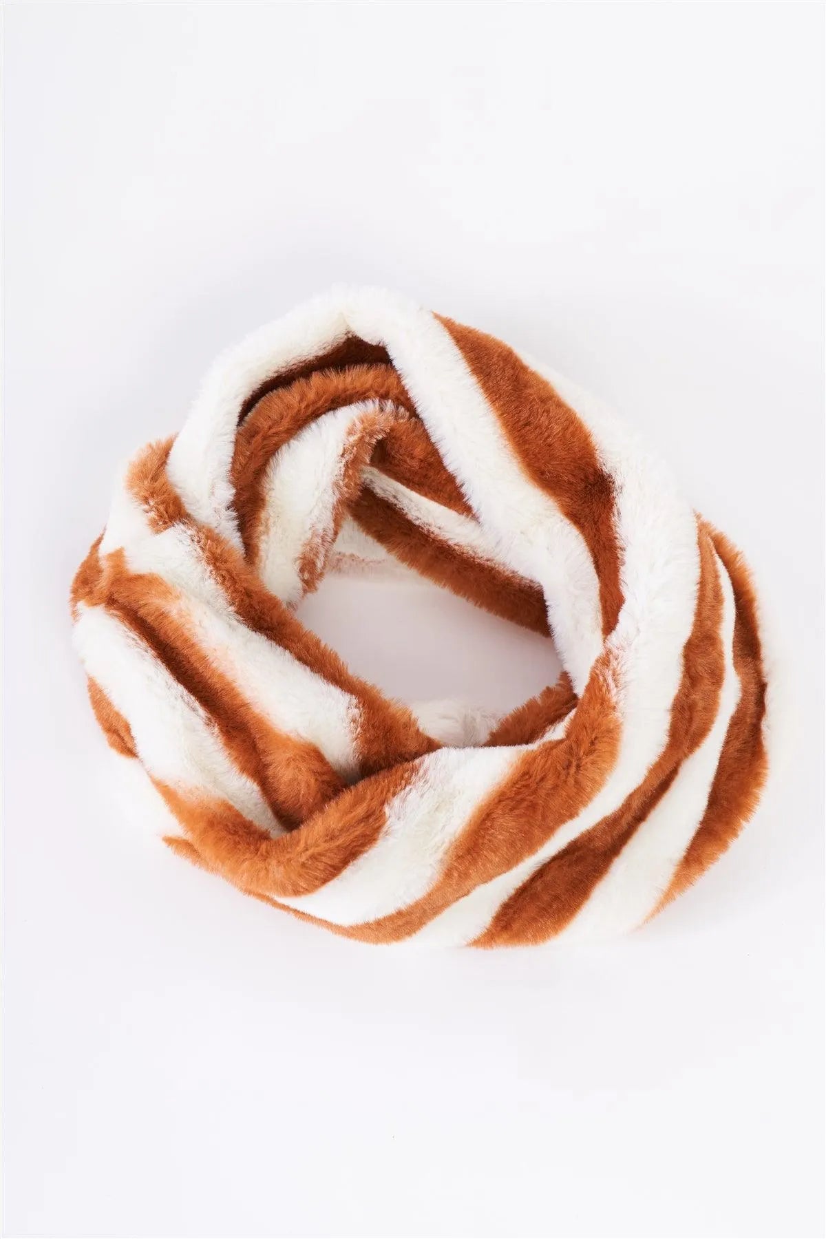Striped Fuzzy Faux Fur Twisted Infinity Scarf /3 Pieces