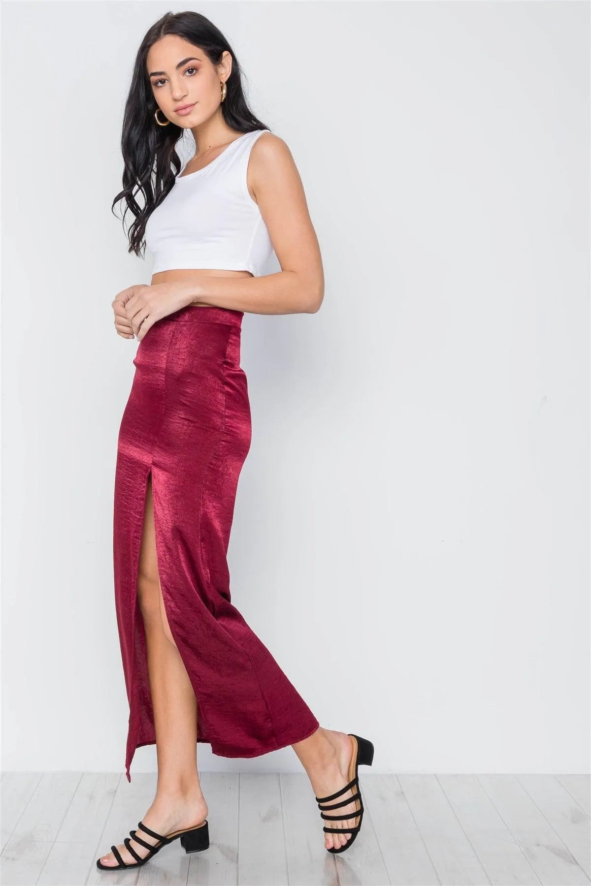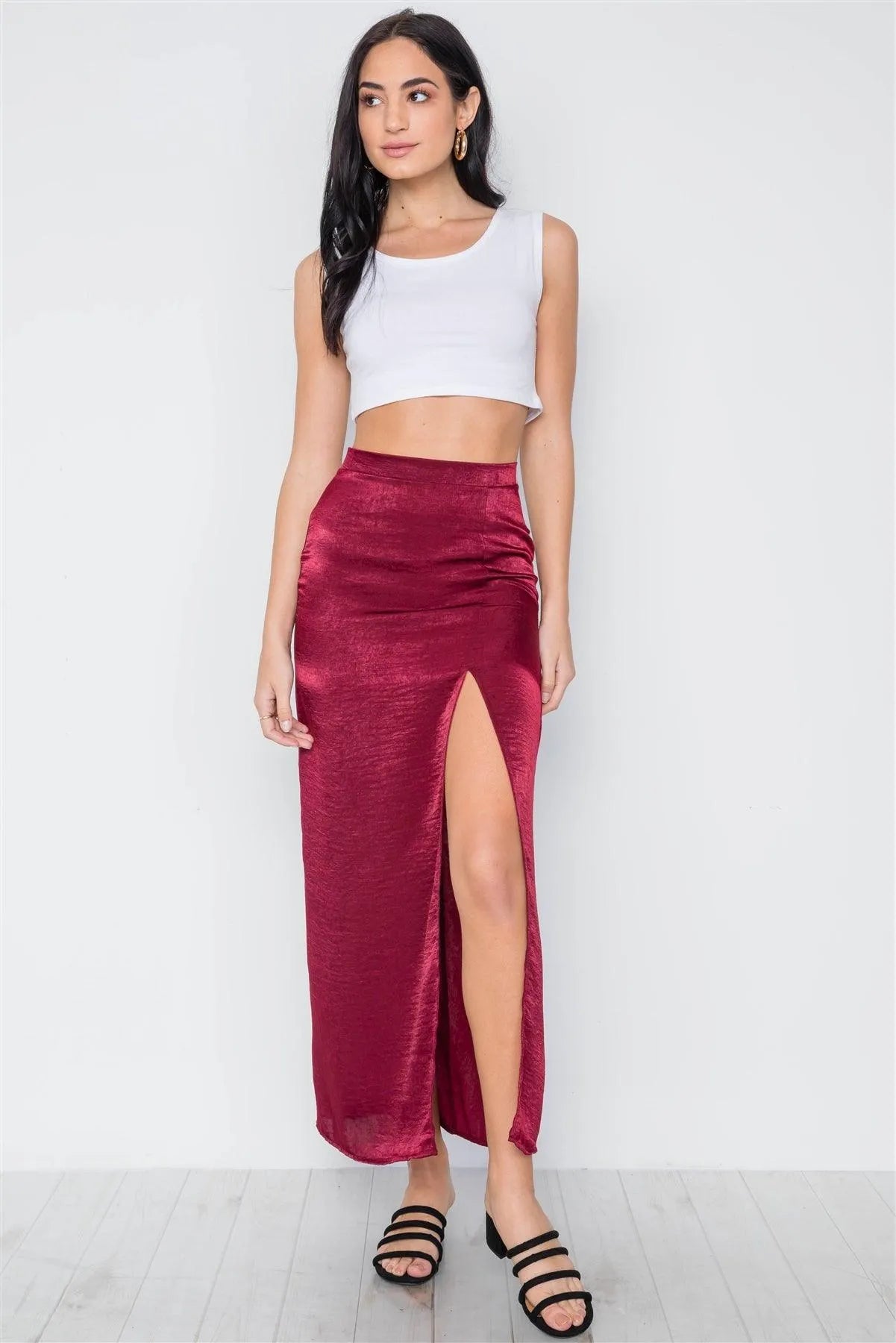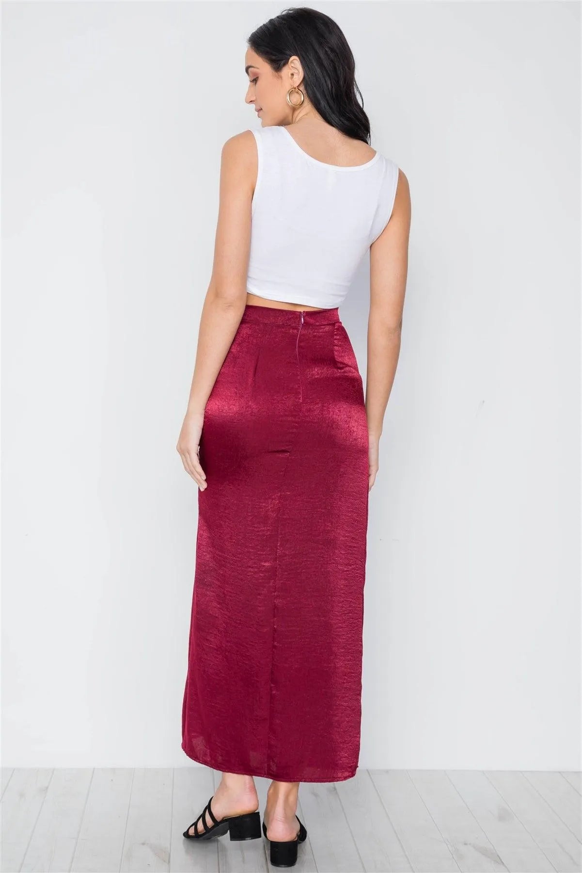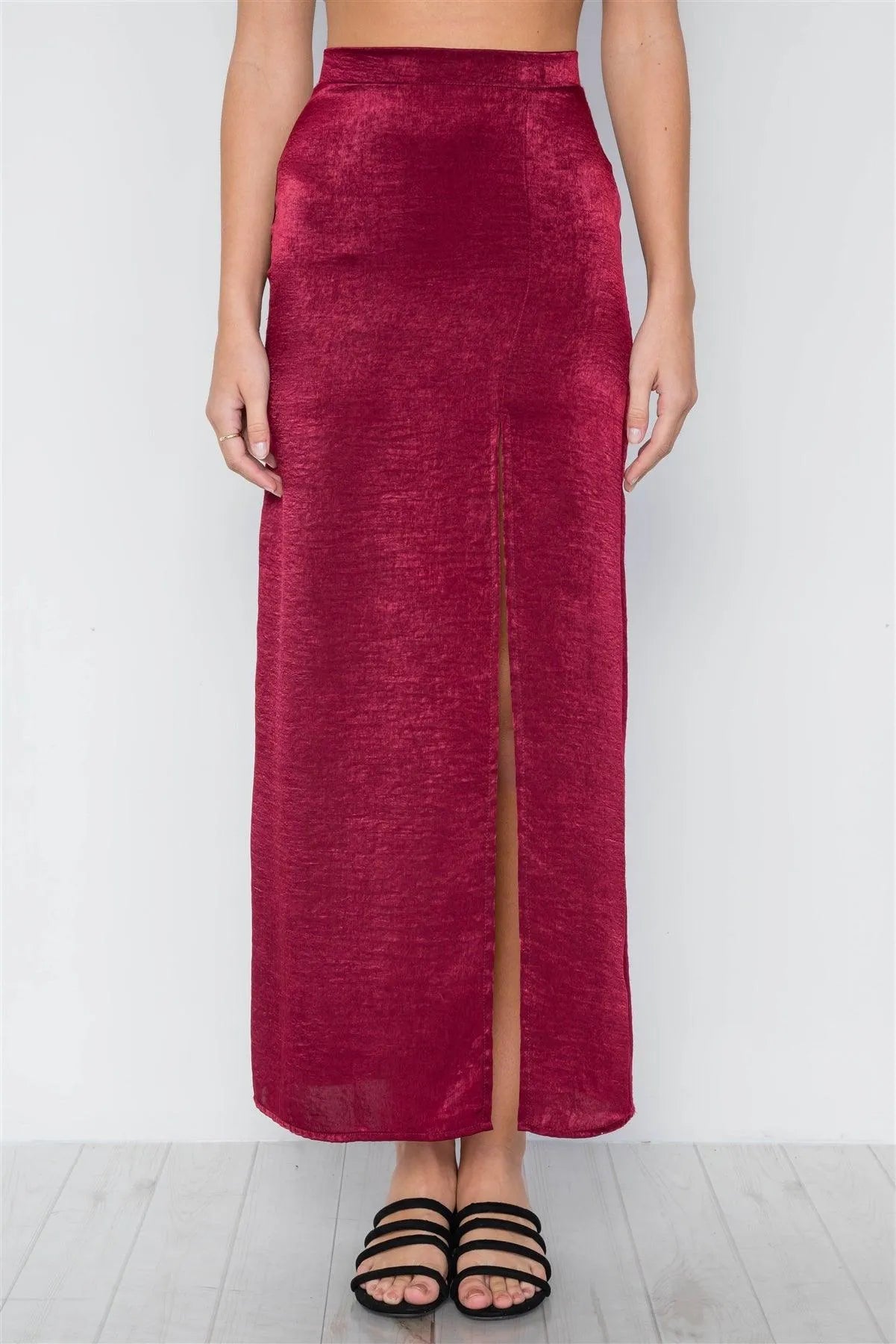 Burgundy Bodycon Front Slit Maxi Skirt /3-2-1