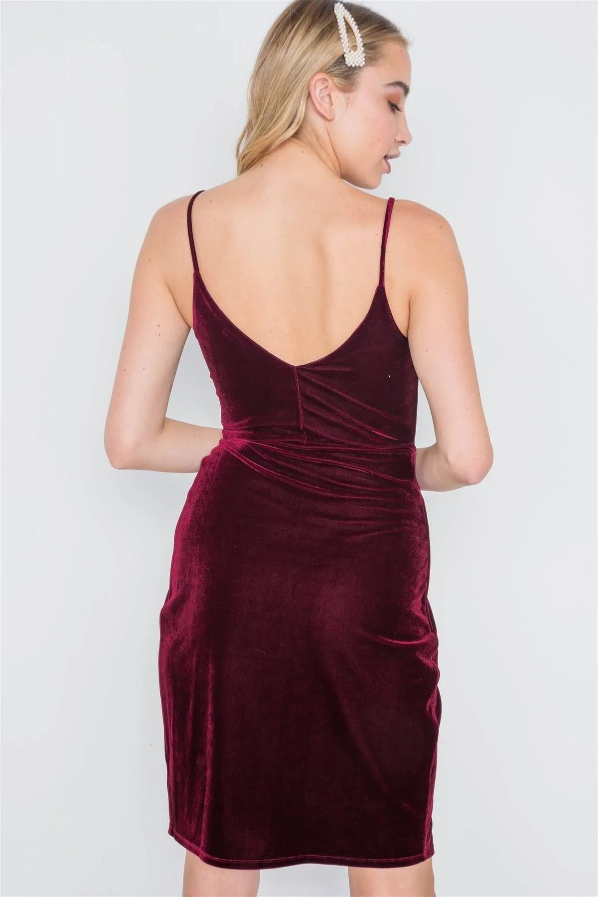 Burgundy Cami Velvet Front Twist Evening Dress /2-1-2