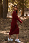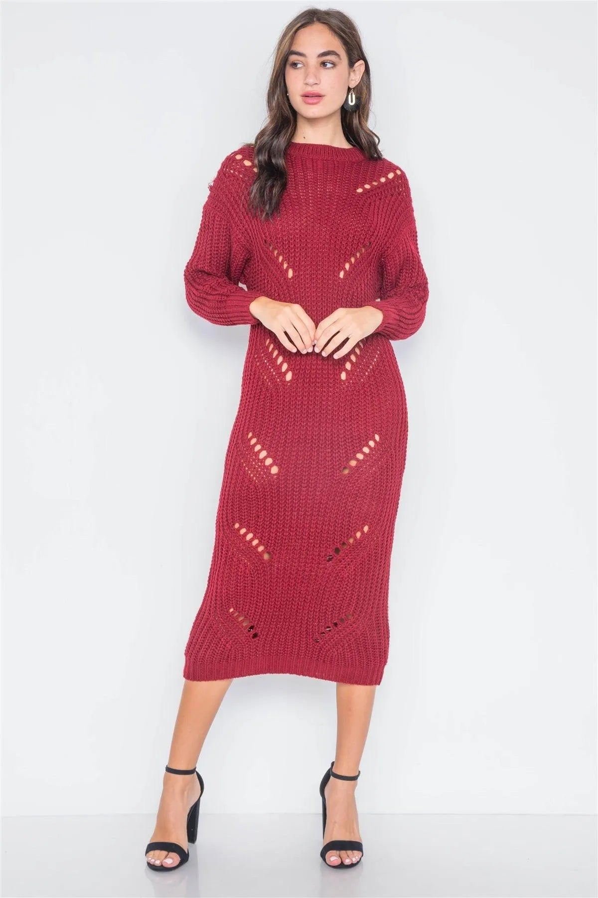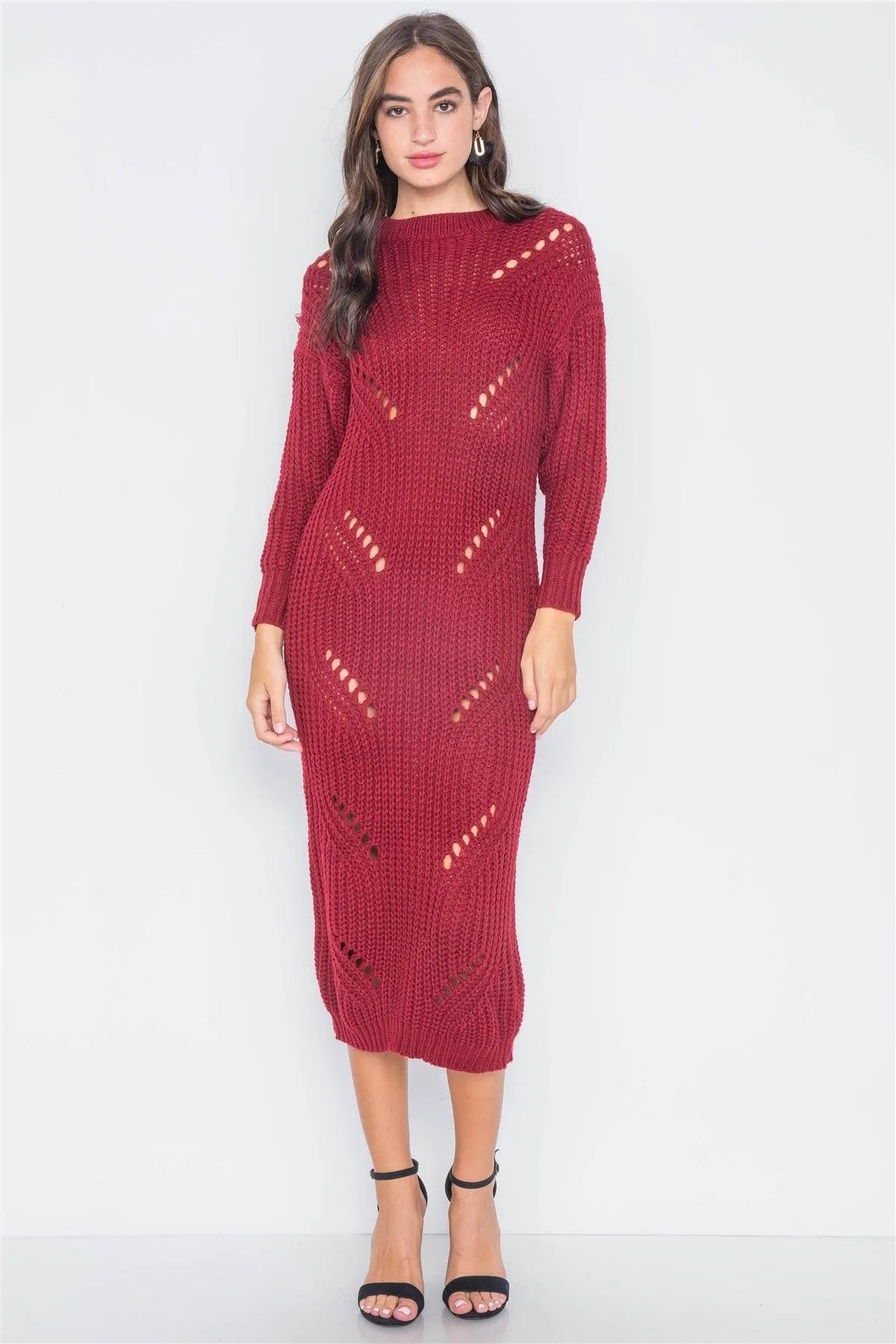 Burgundy Chunky Knit Long Sleeve Sweater Dress