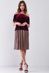 Burgundy Velvet Off-The-Shoulder Short Sleeve Relaxed Top /1-2-2-1